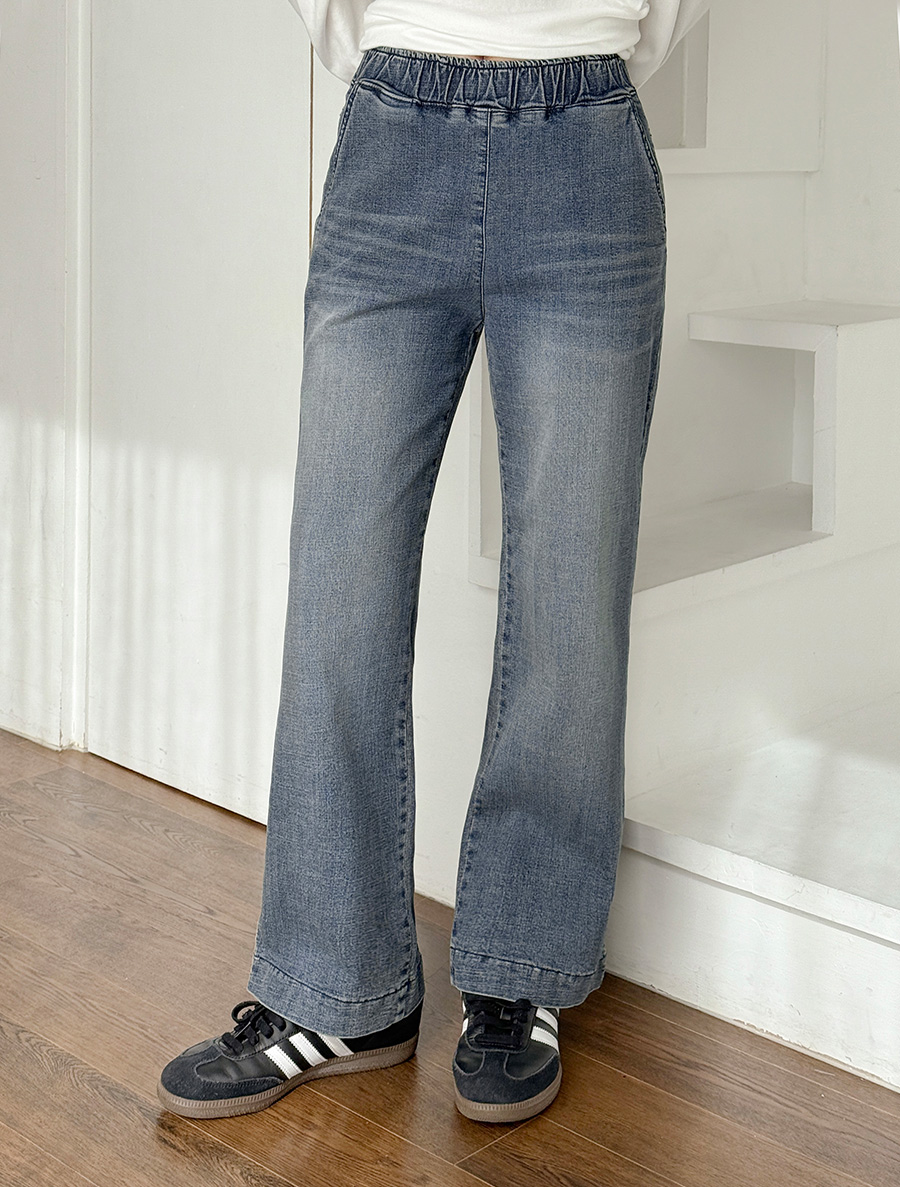 チェフハウォッシングストレートデニムウエストバンドパンツ