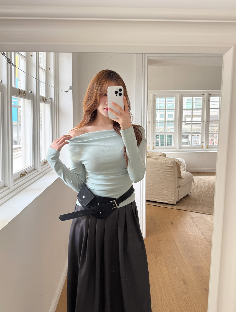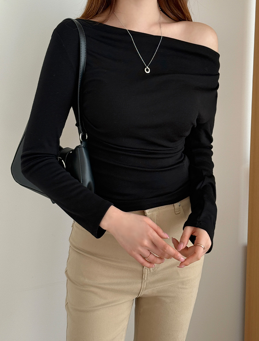 オンプ製ドレープオフショルダーティーシャツ