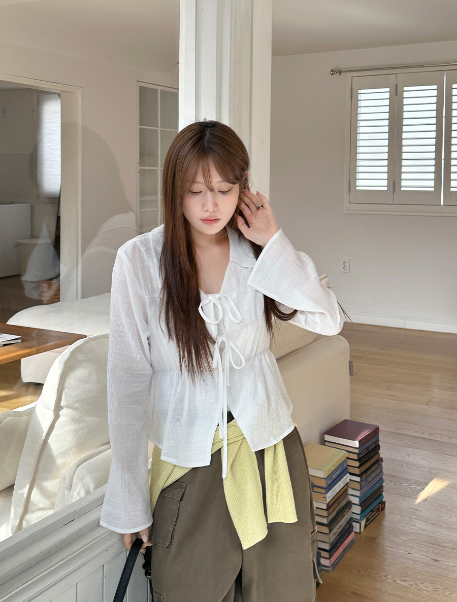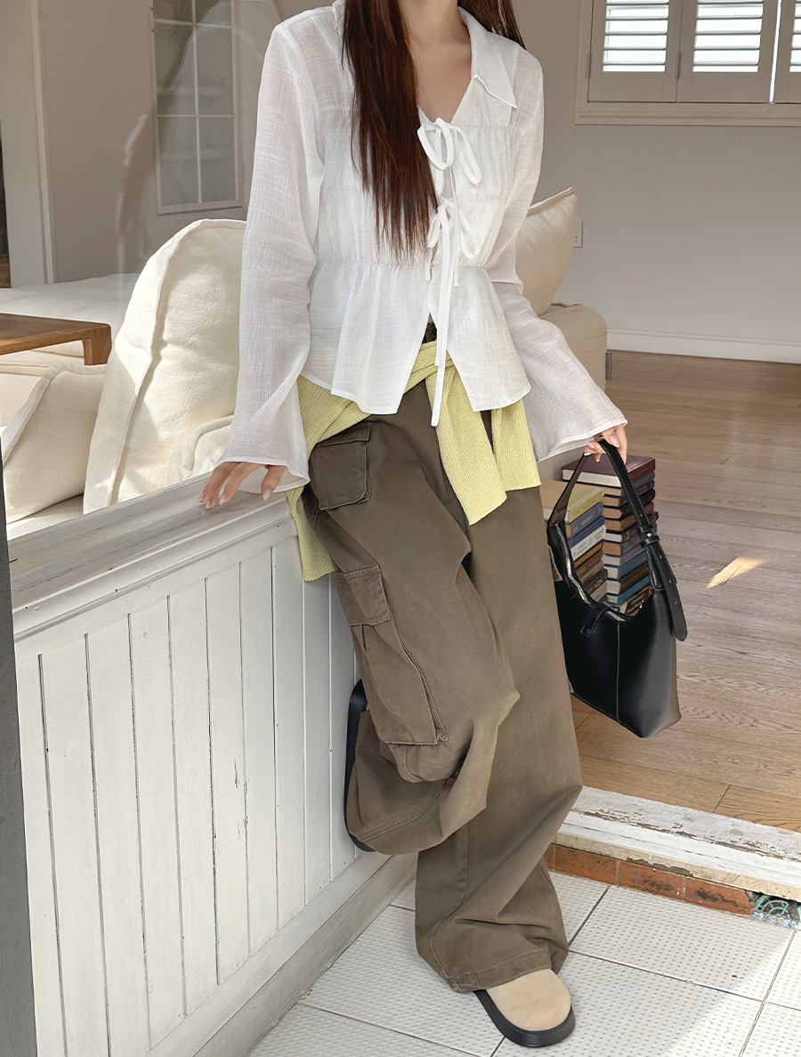 [EVELLET]タフリンブイネックシャーリングブラウス