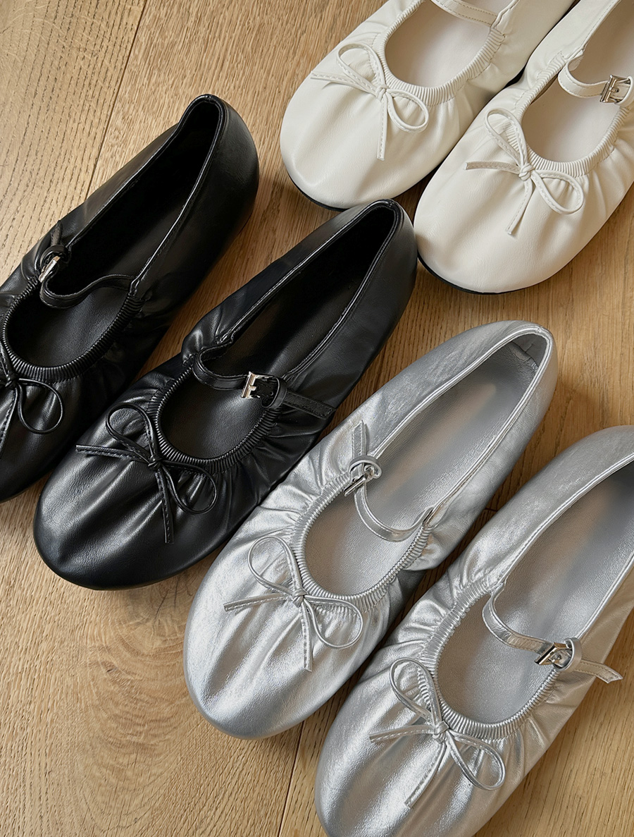テリクリボンレザー メリージェーンシューズ(1cm)