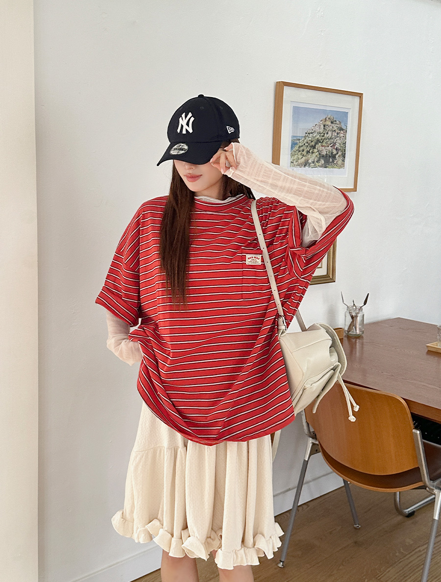 エロテスタイル配色パッチトゥームティーシャツ