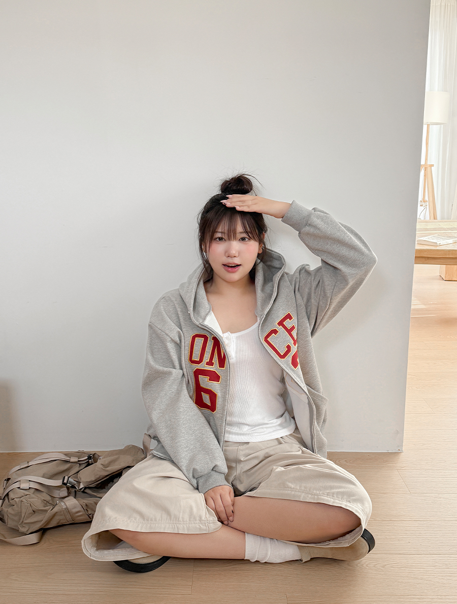 ハテフ刺繍ツーウェーフードジップアップ