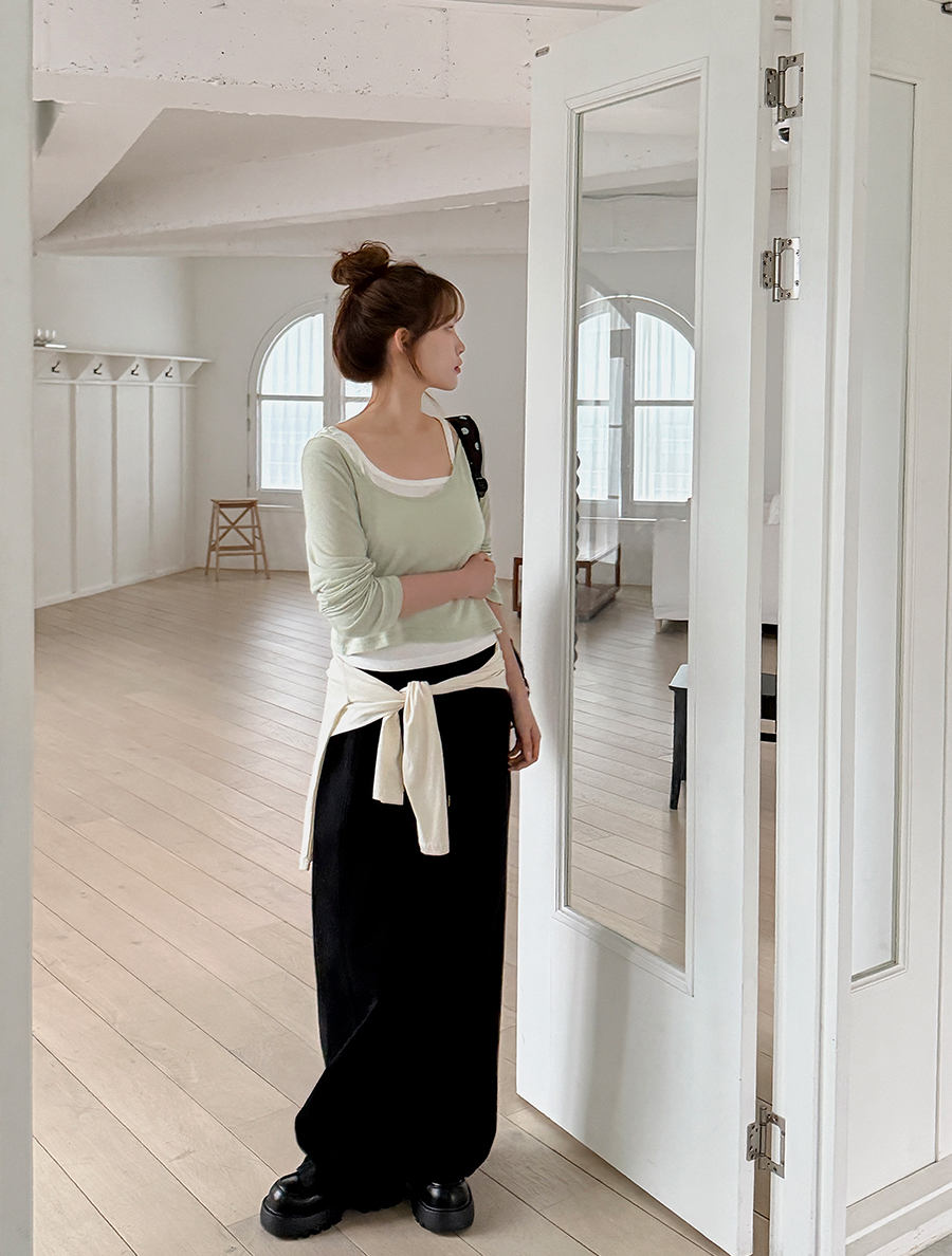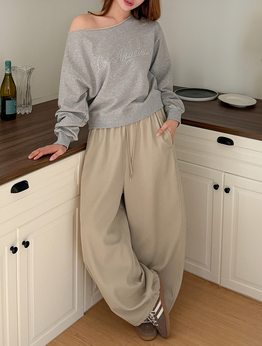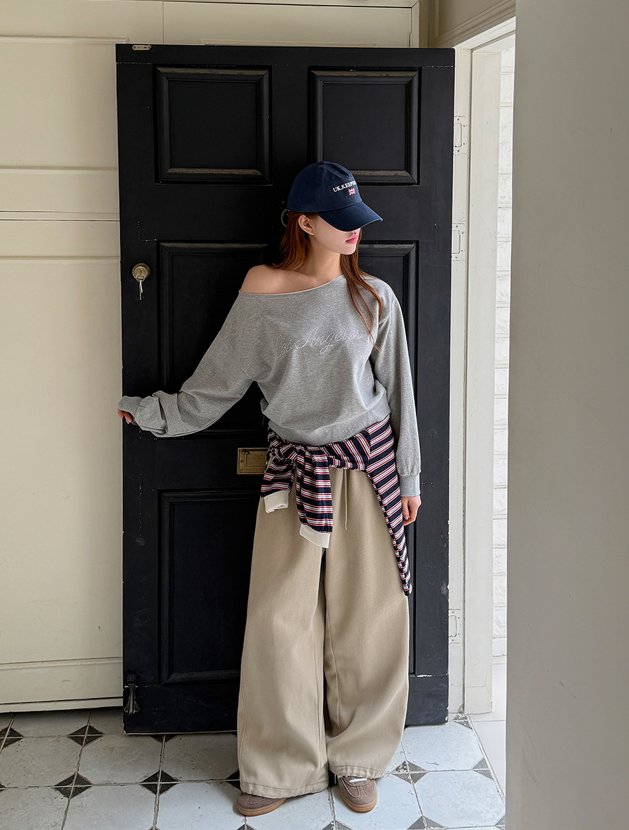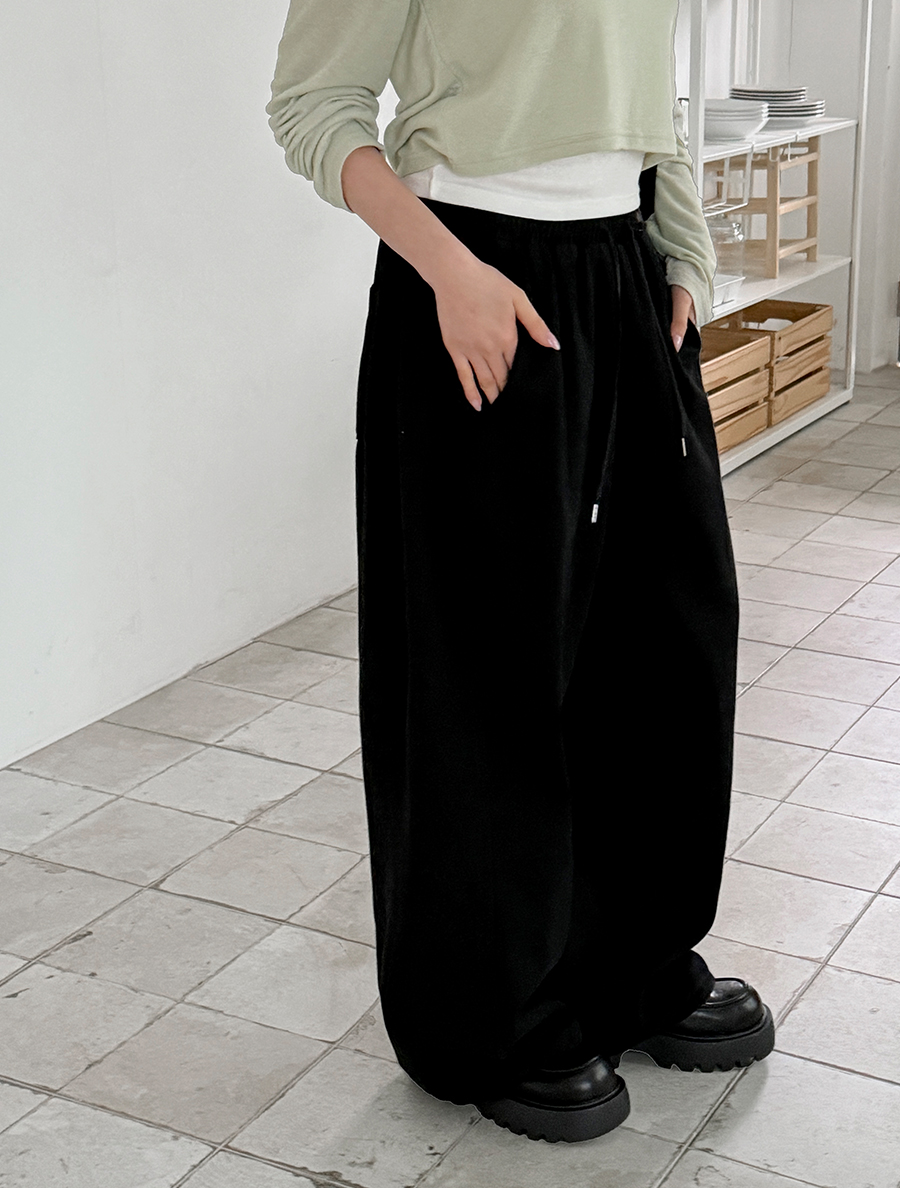 [日常パンツ]モティベコットンストリング切開ウエストバンドパンツ