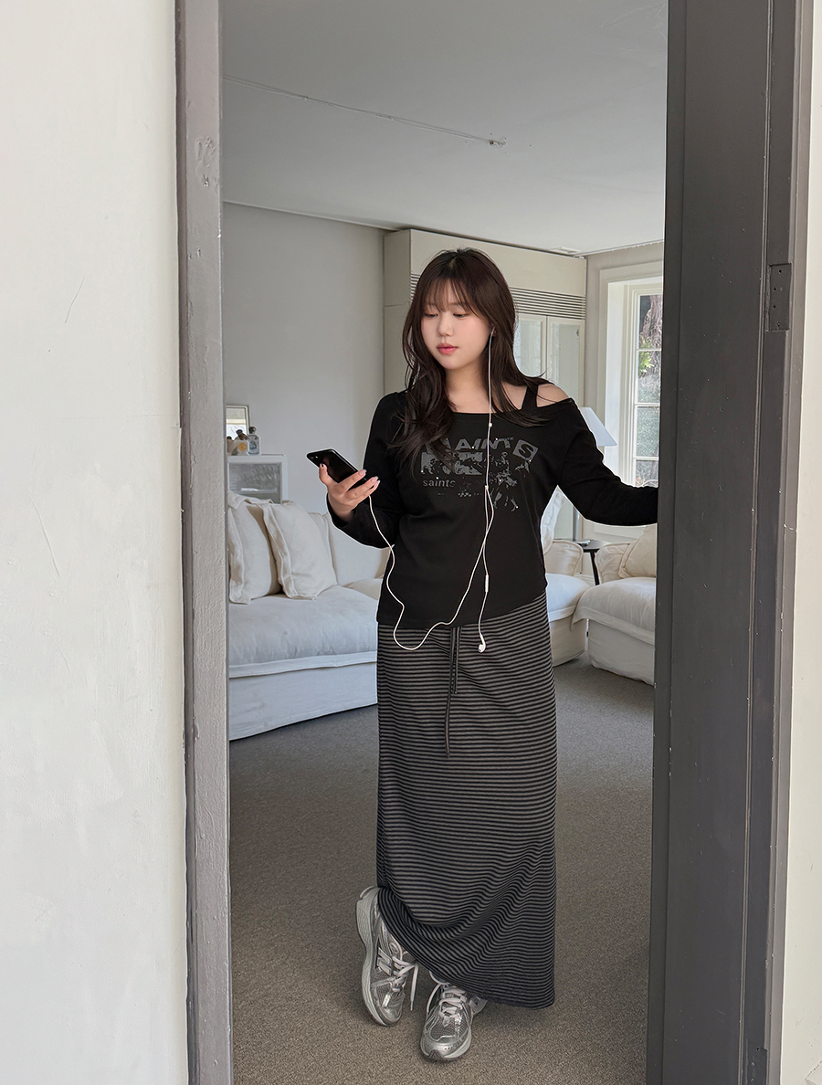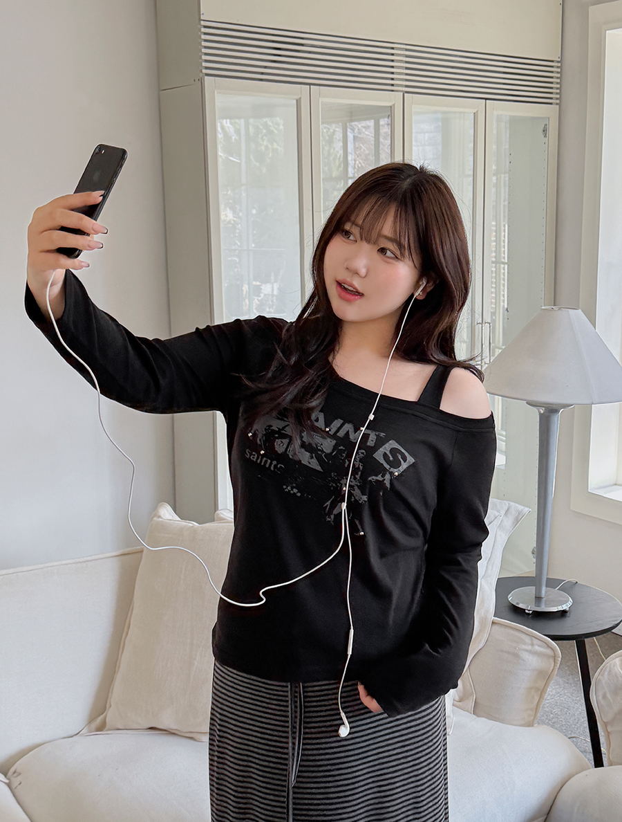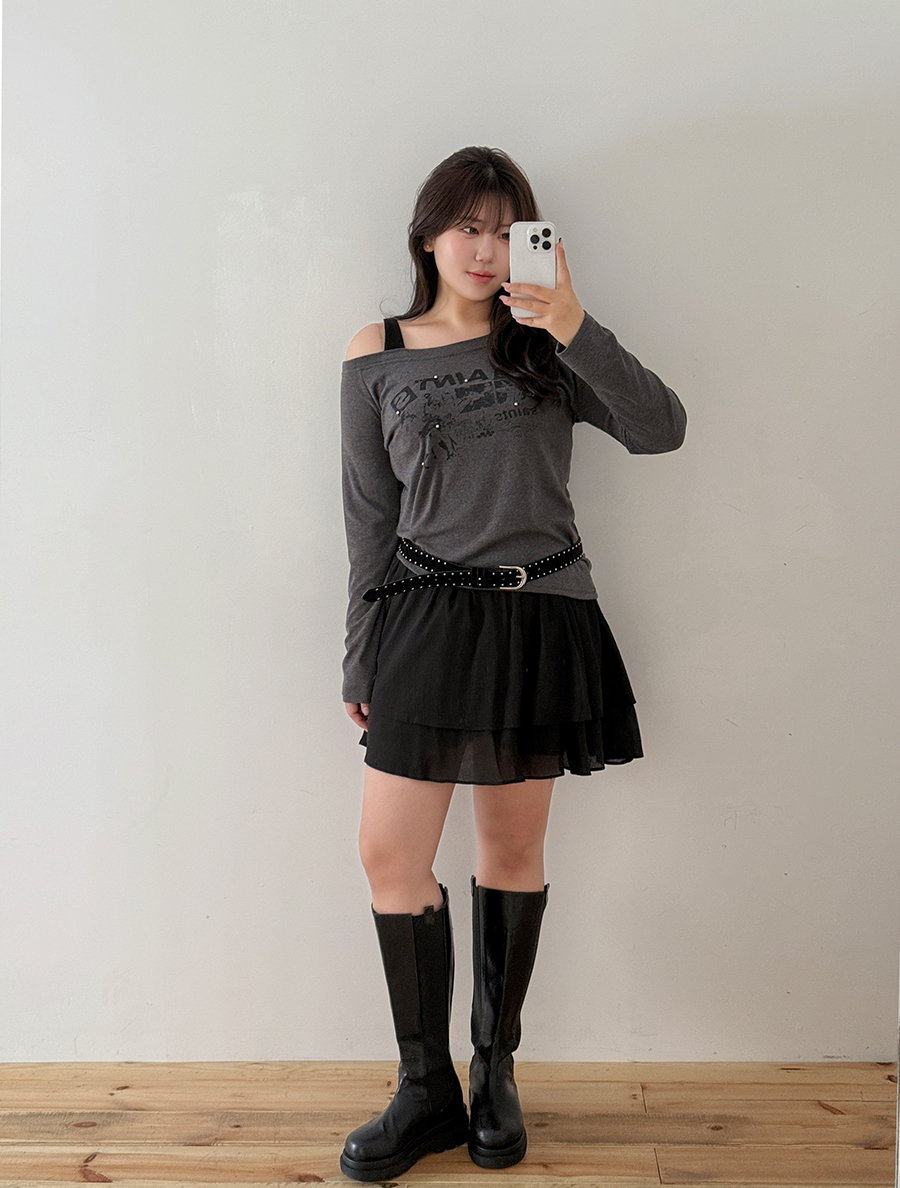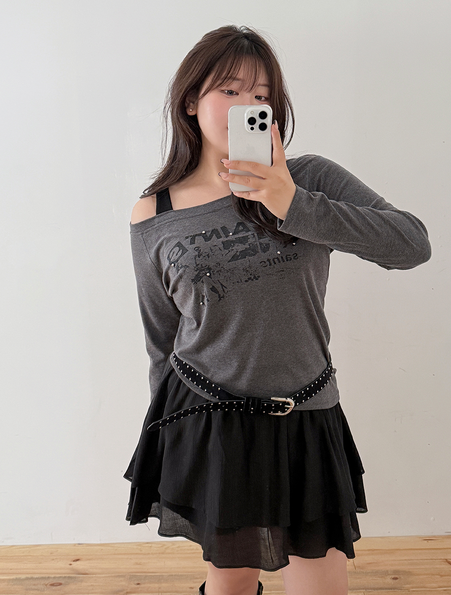 [EVELLET]ルベネン アンバランス 配色 オフショルダーティーシャツ