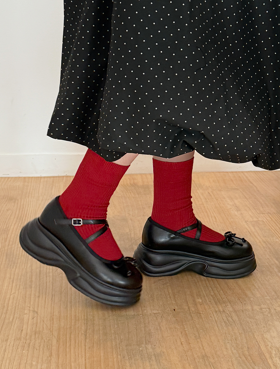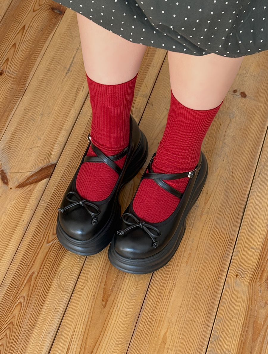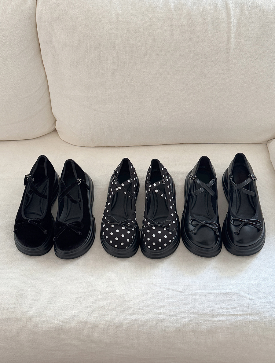 アケミューリボンプラットフォームソールメリージェーンシューズ(6.5cm)
