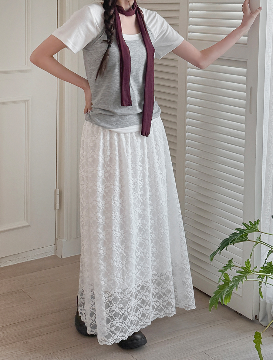 ミューティヘンシーツルーレースロングスカート