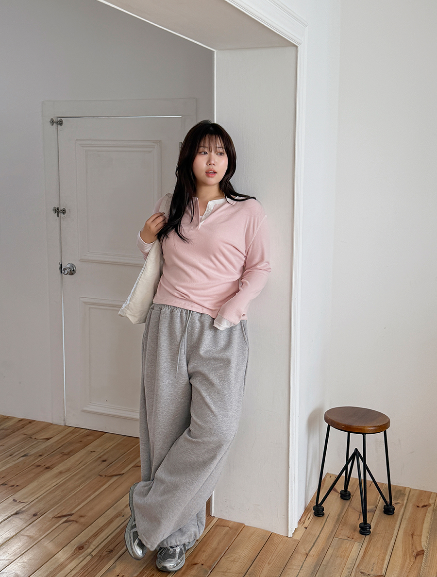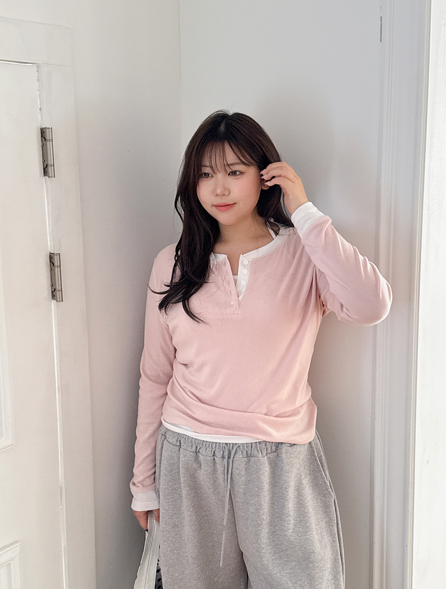 モニデン配色ステッチボタンティーシャツ