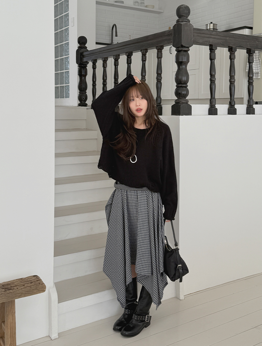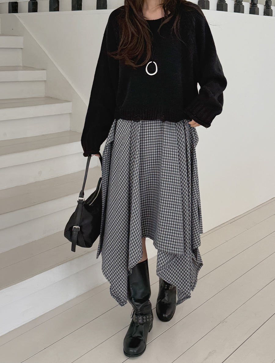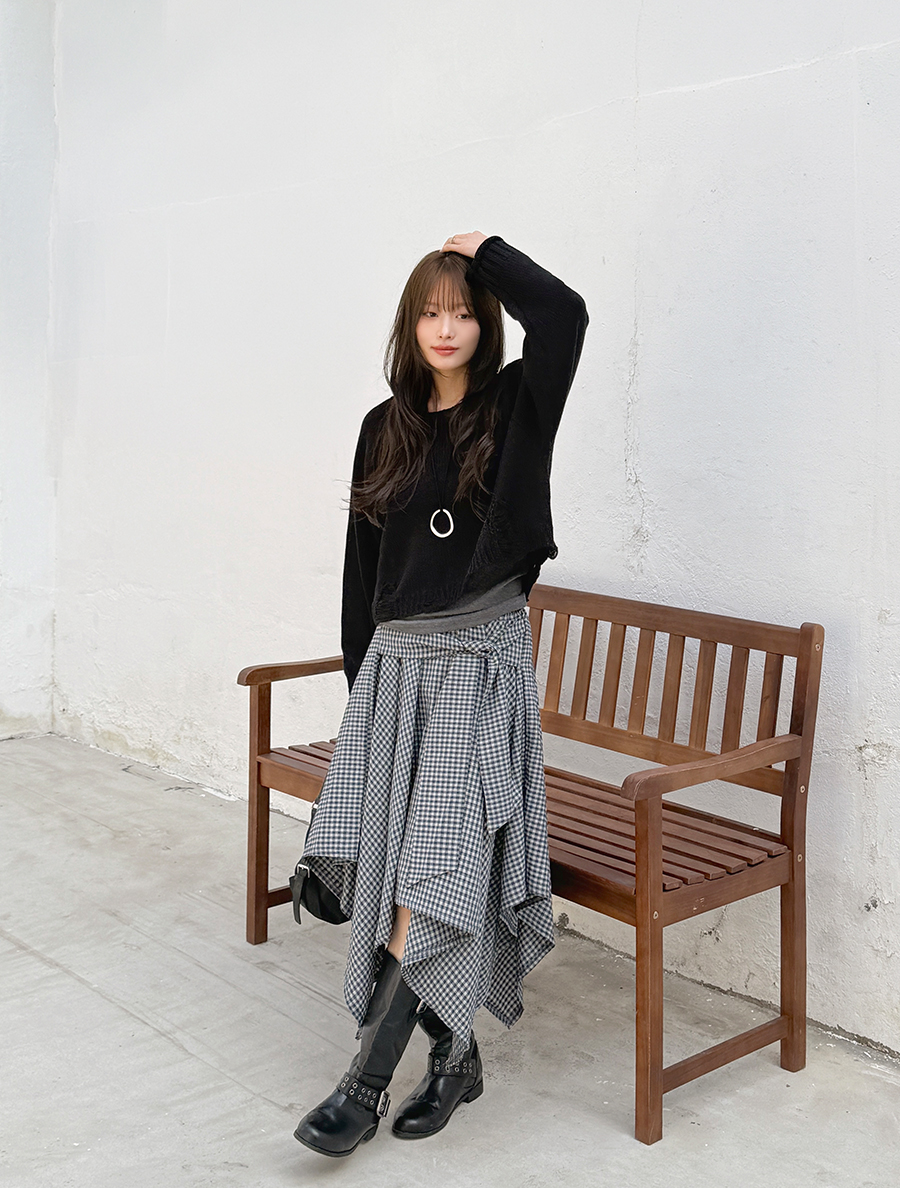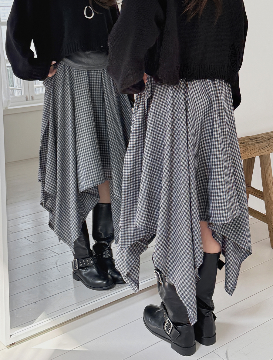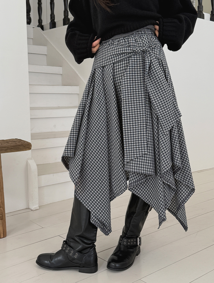 キューネオンチェックストラップアンバランススカート