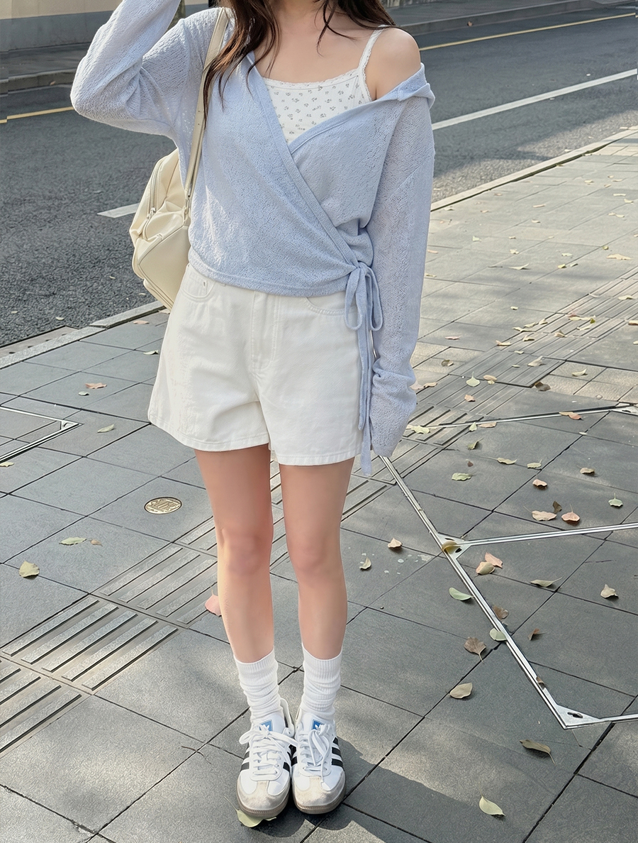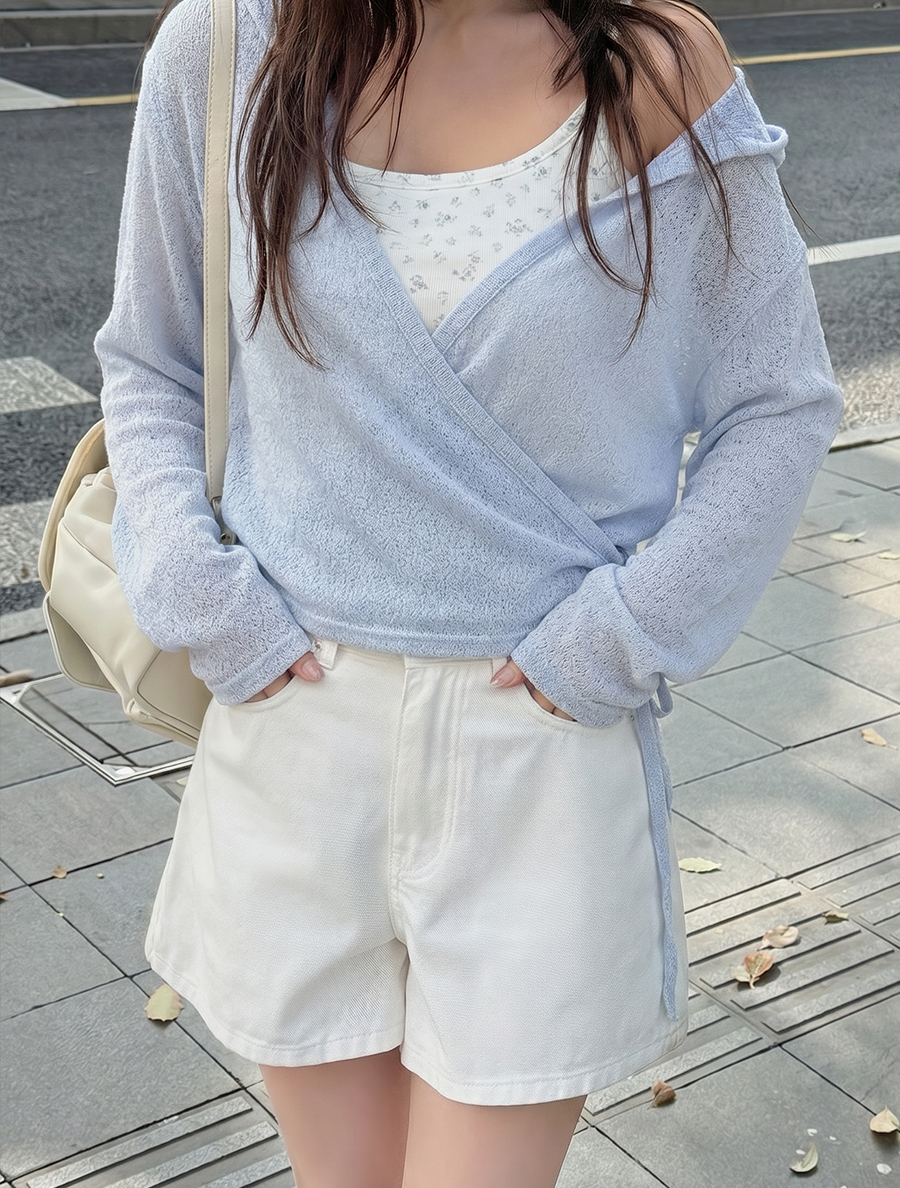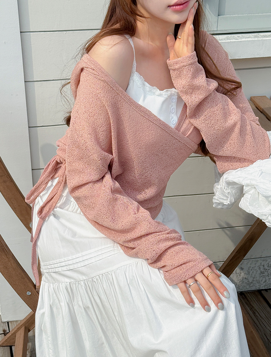 [EVELLET]ブチネンラップフードリボンカーディガン