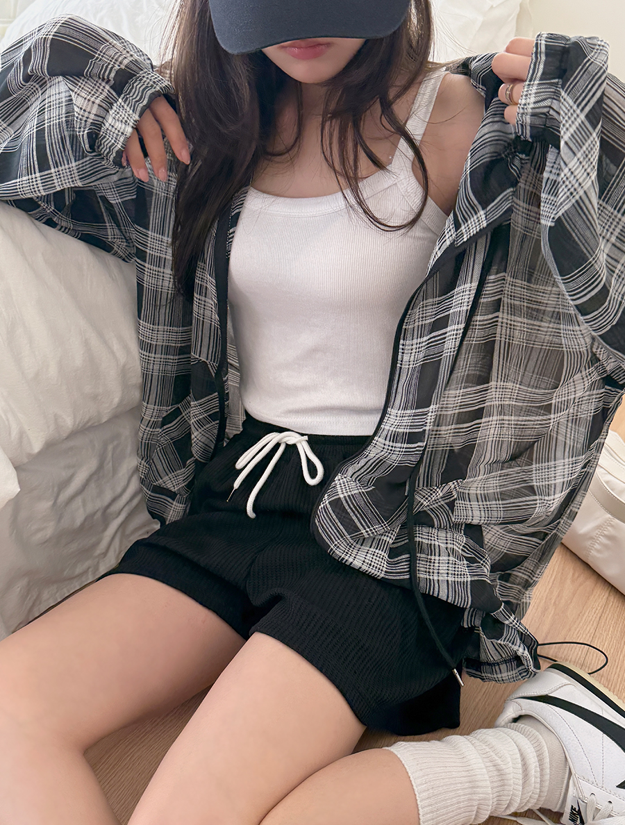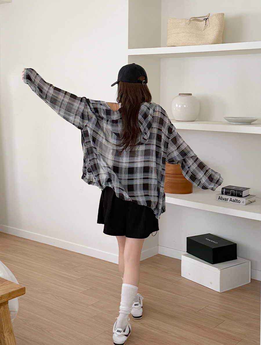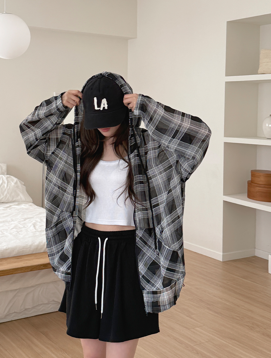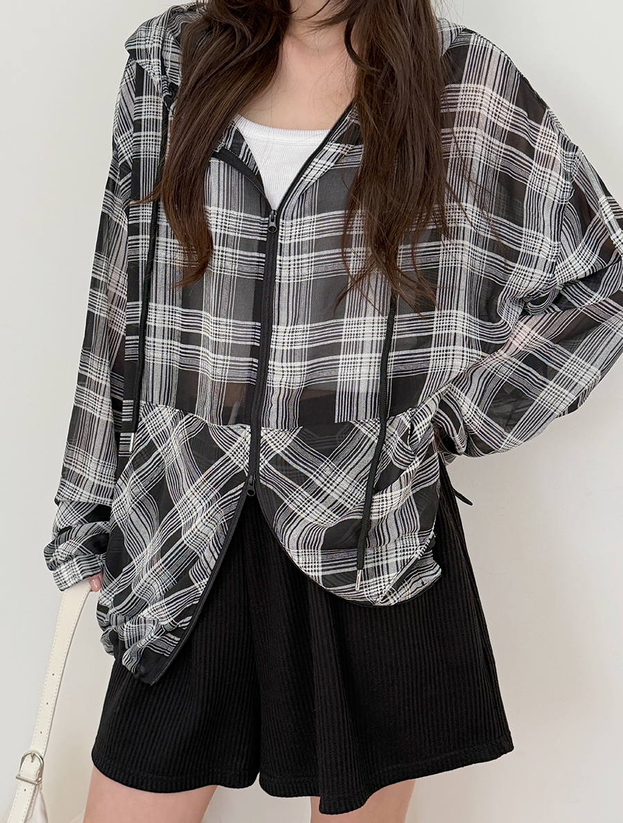 ルミュアチェックツウェーシーツルフードジップアップ