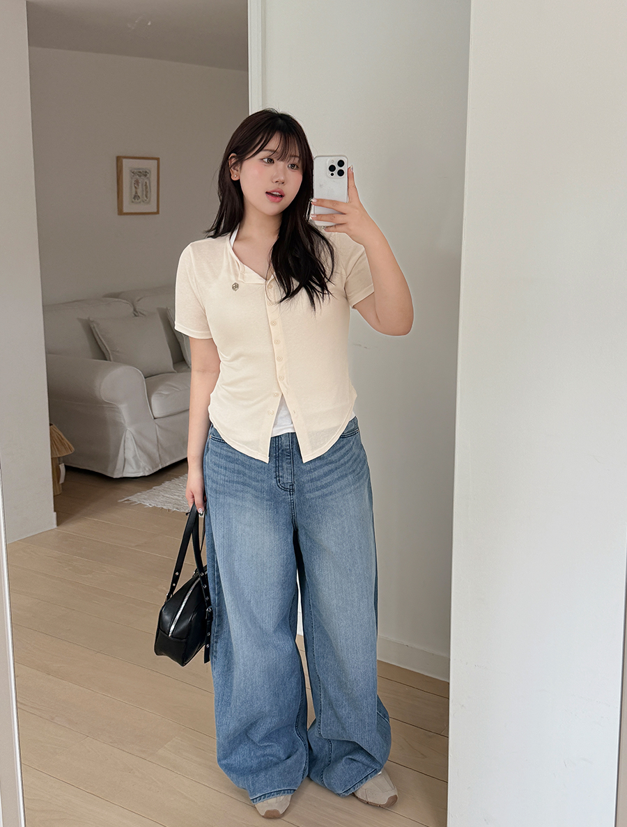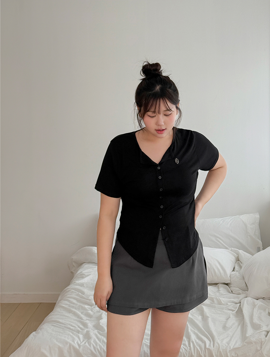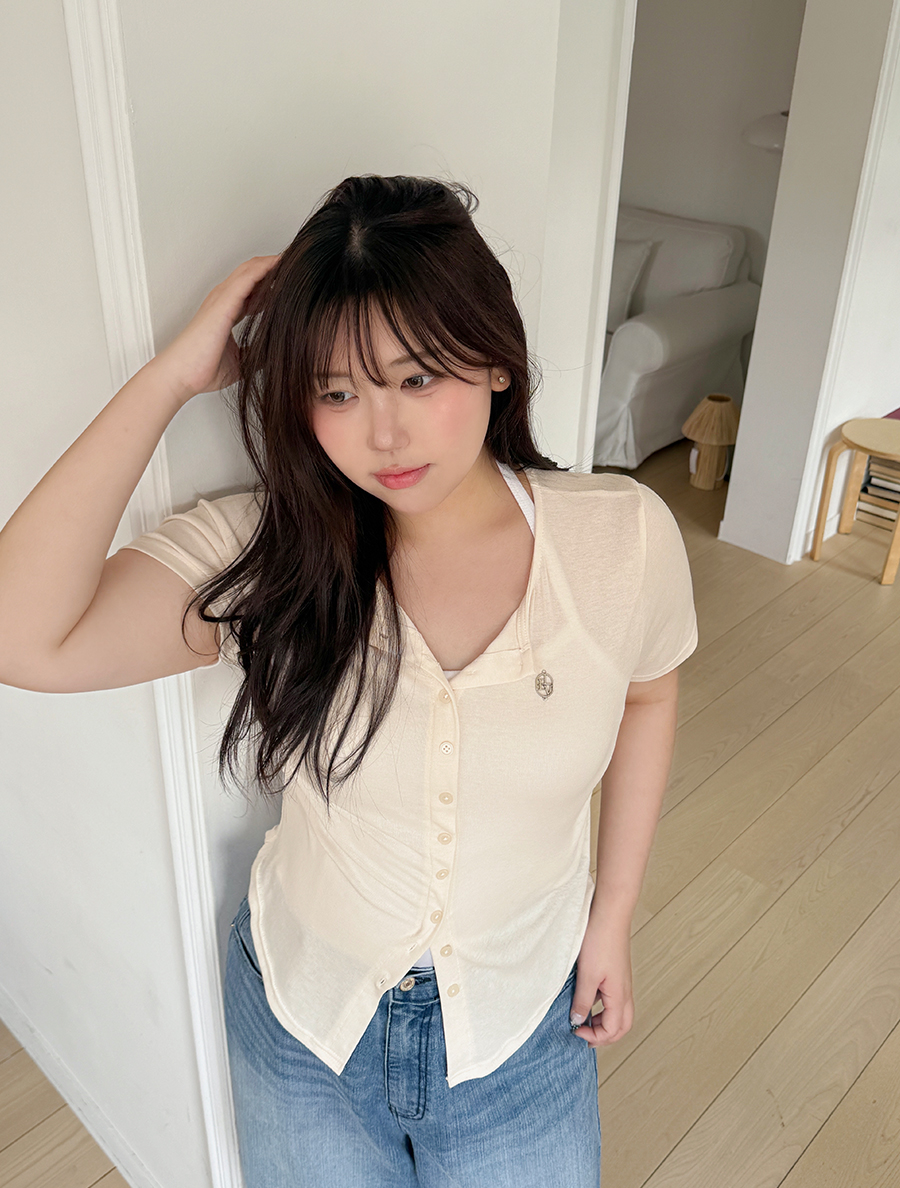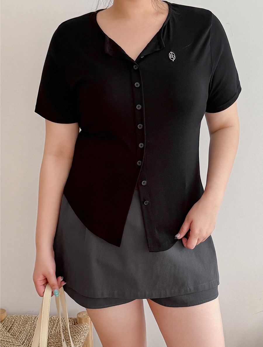 [EVELLET]レニュア・チャーランロールラベルボタンティーシャツ