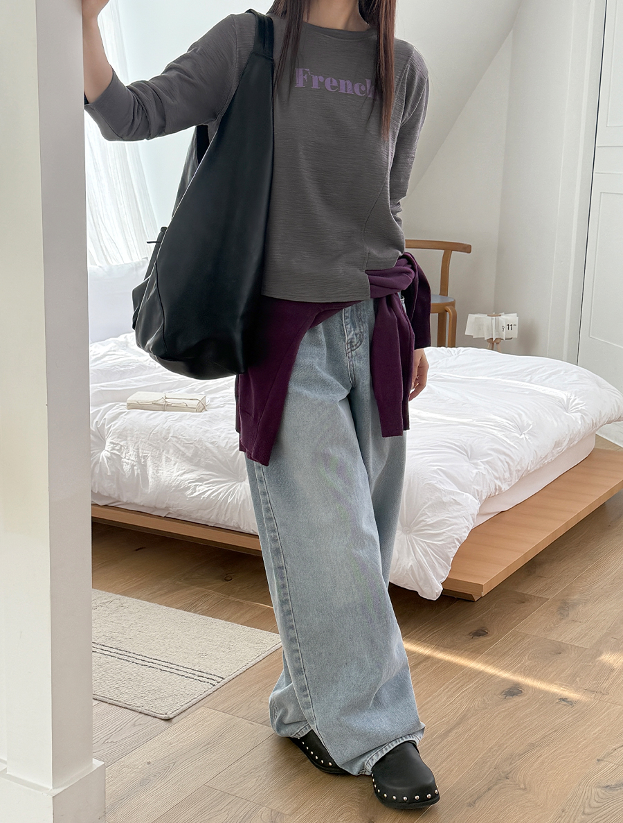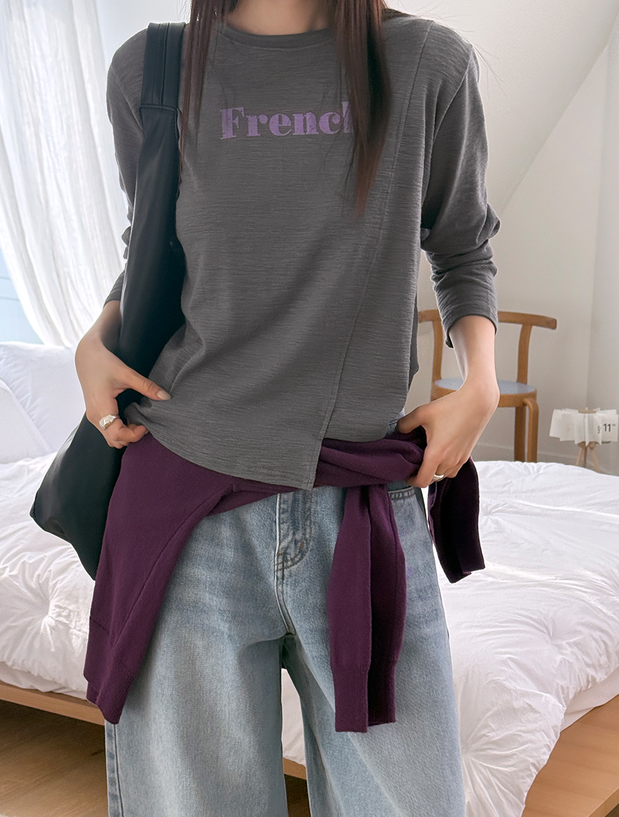 ポチュア切開アンバランスレターリングティーシャツ