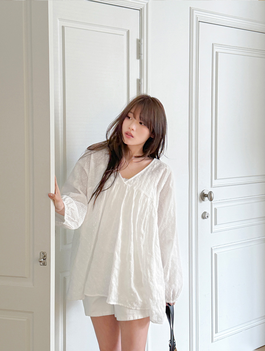 テフューディパンチングシーツルーコットンブラウス