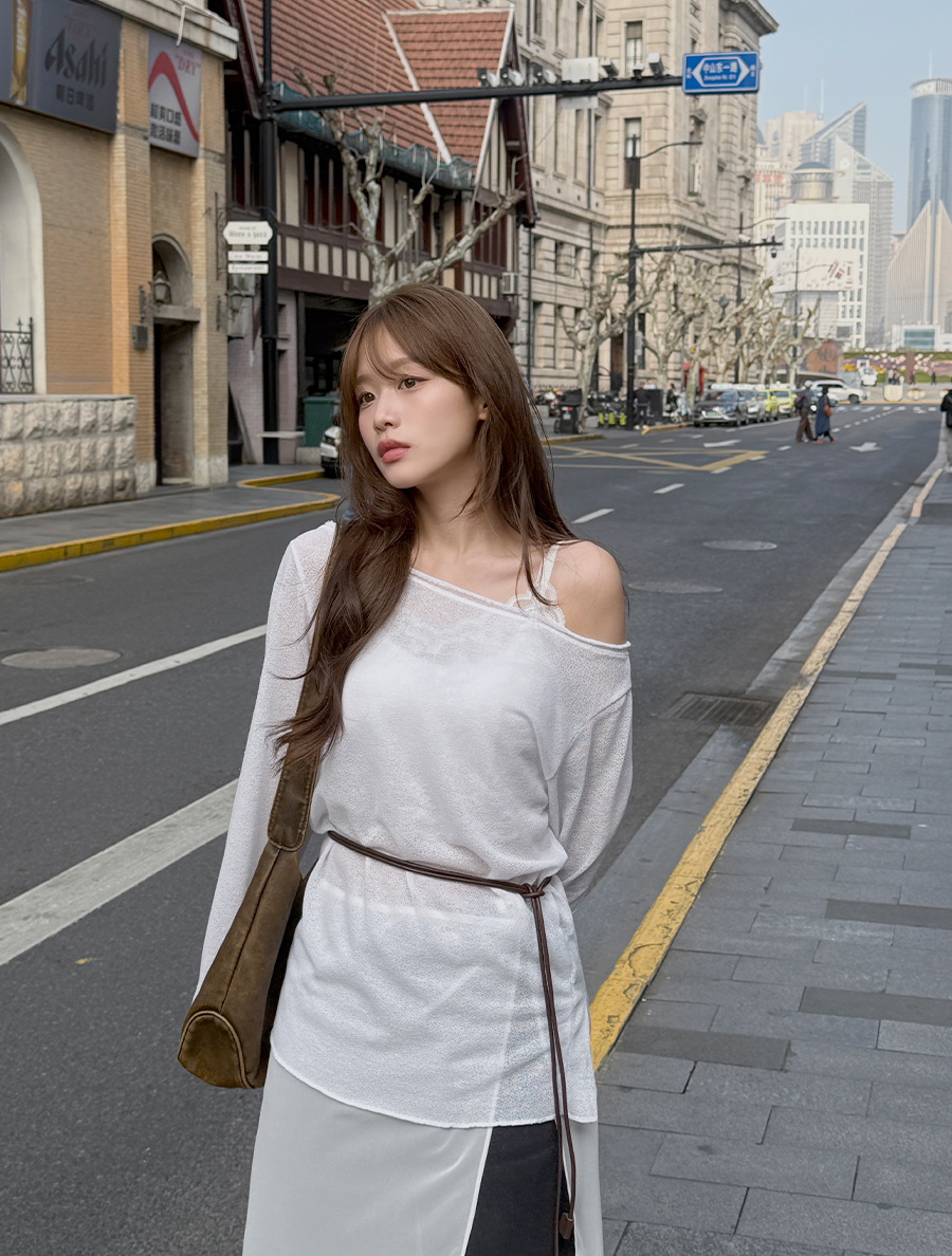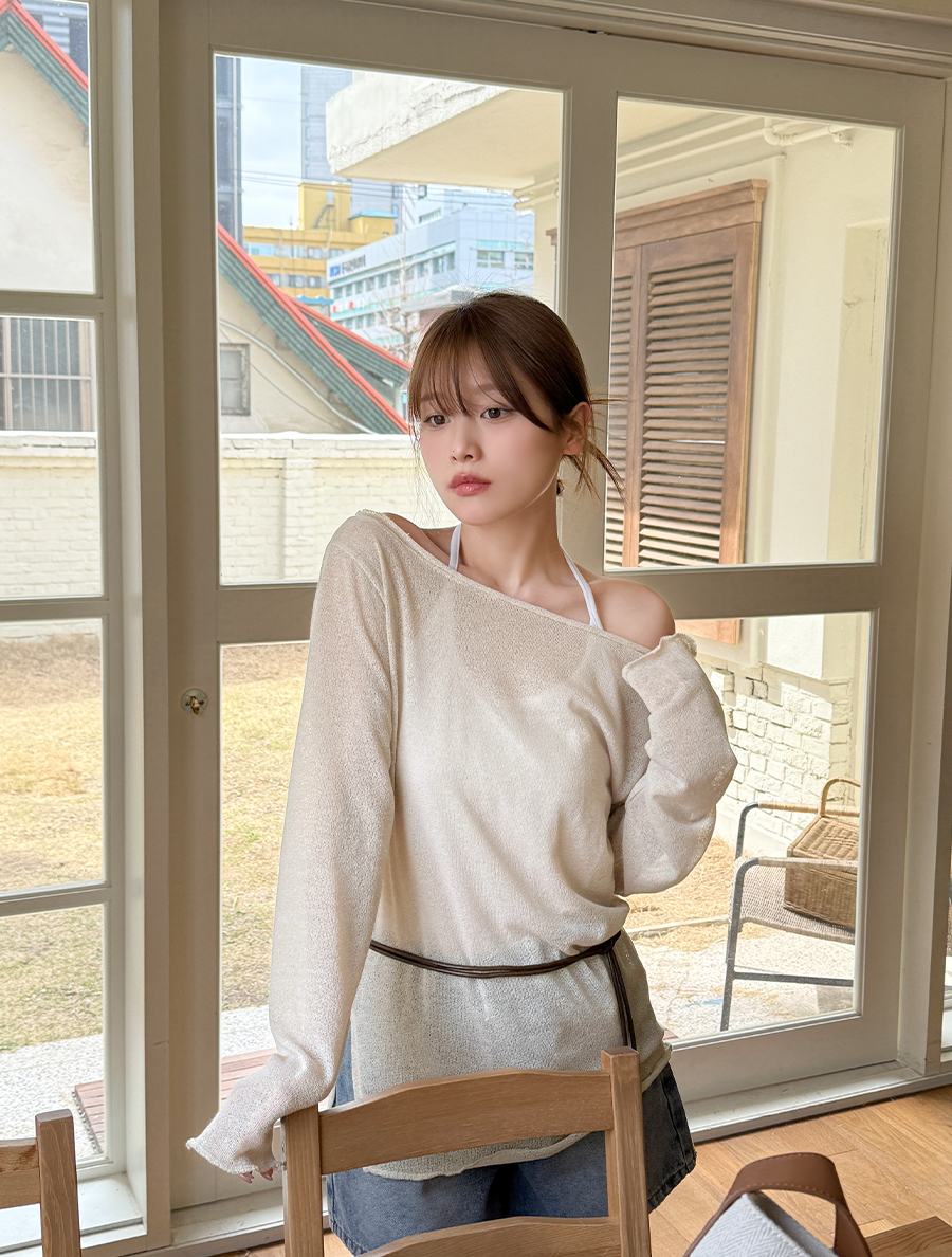 [EVELLET]エティセンワイドネックトイムティーシャツ