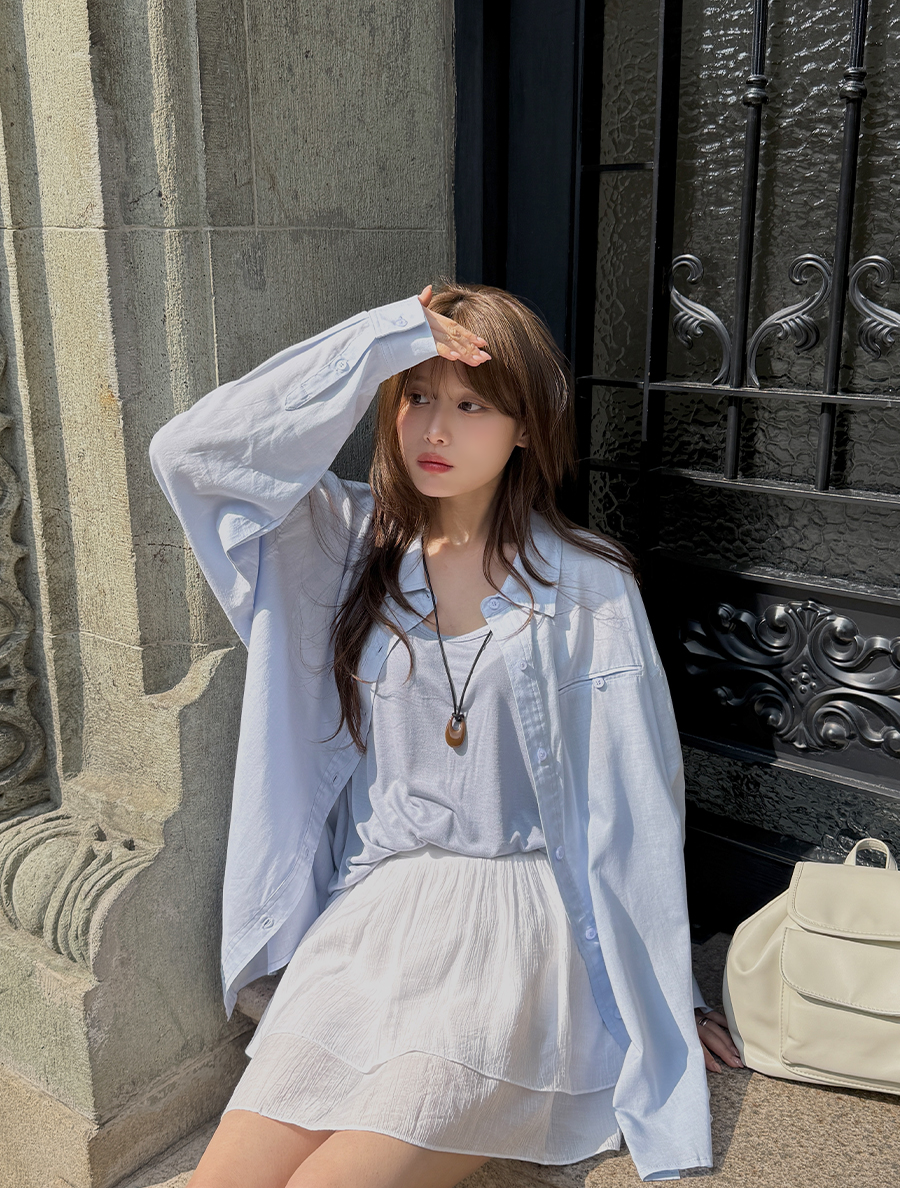 [EVELLET]ミューヘブルーズフィットリネンシャツ