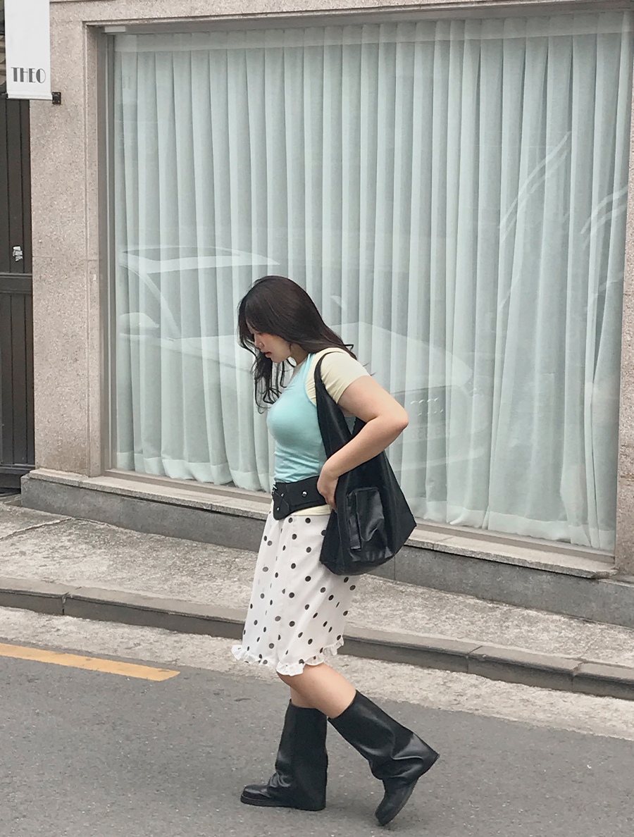 メフアンシーポンフリルトットミディスカート