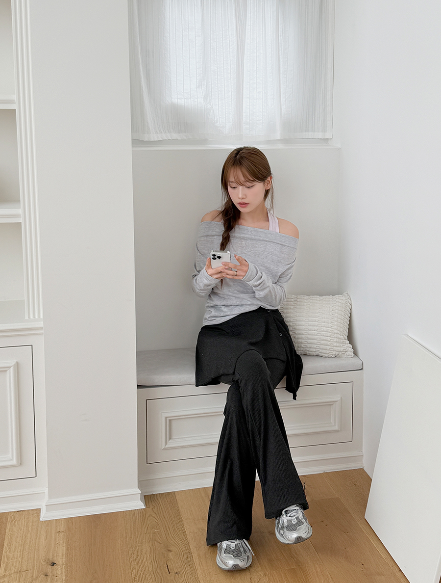 ニューエルン配色ホルターオフショルダーシャーリングティーシャツ