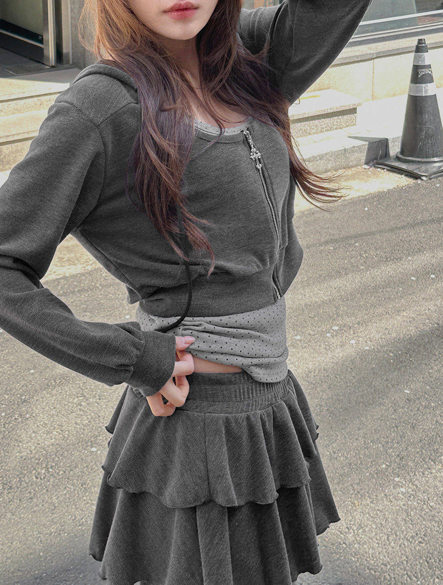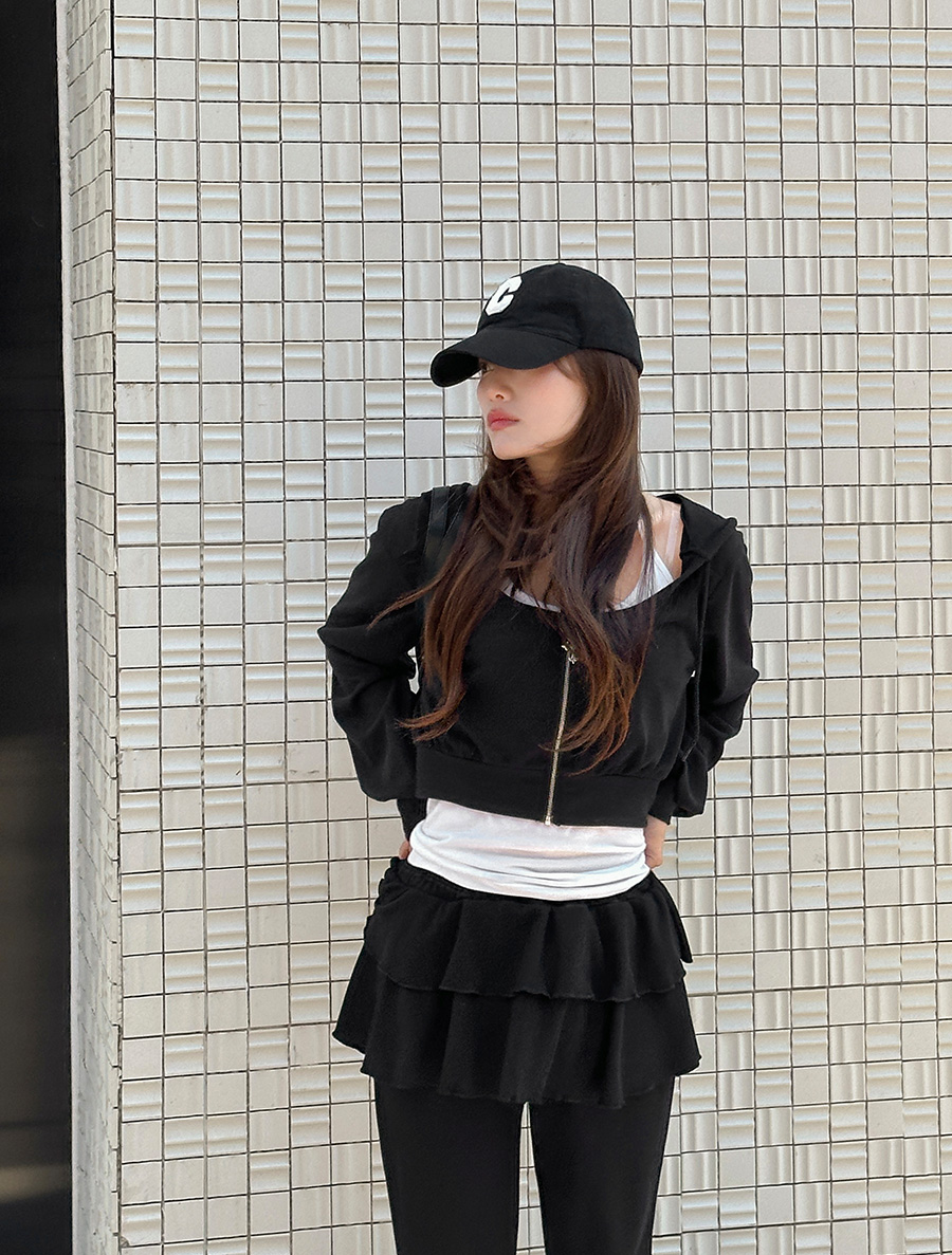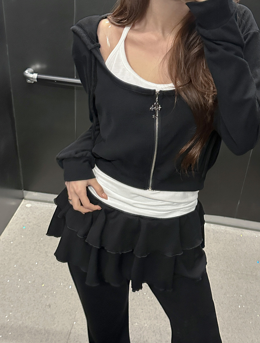 [EVELLET]ベディオフードジップアップカンカンスカートパンツSET