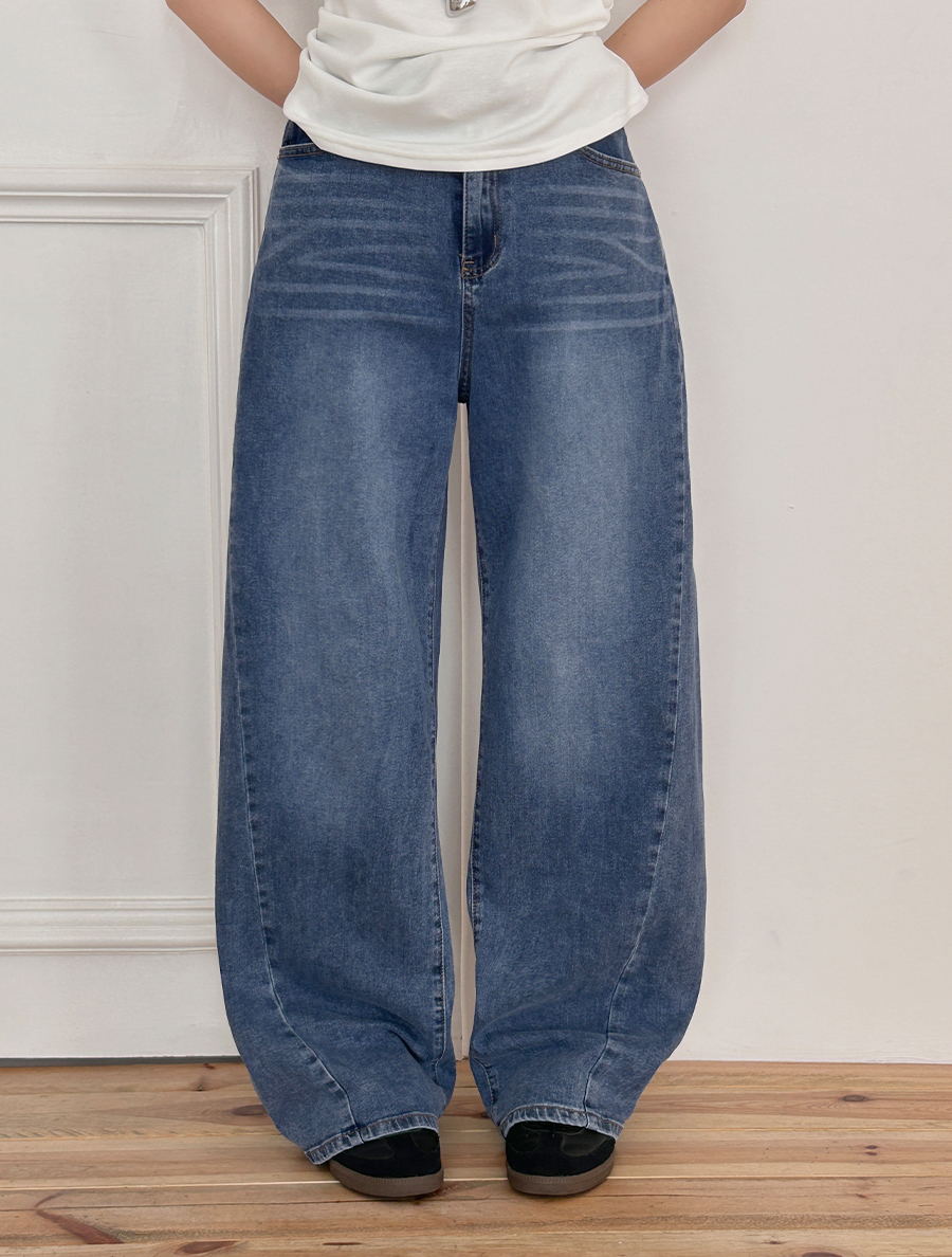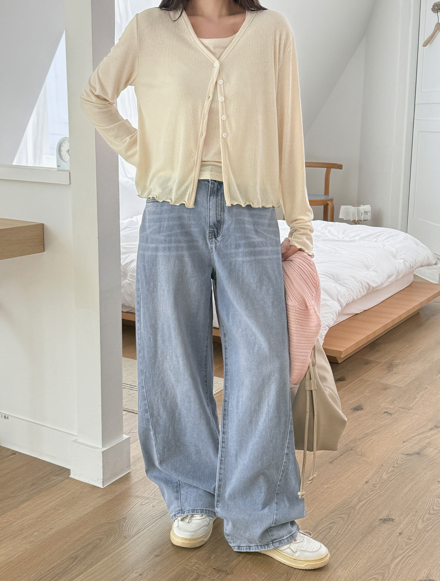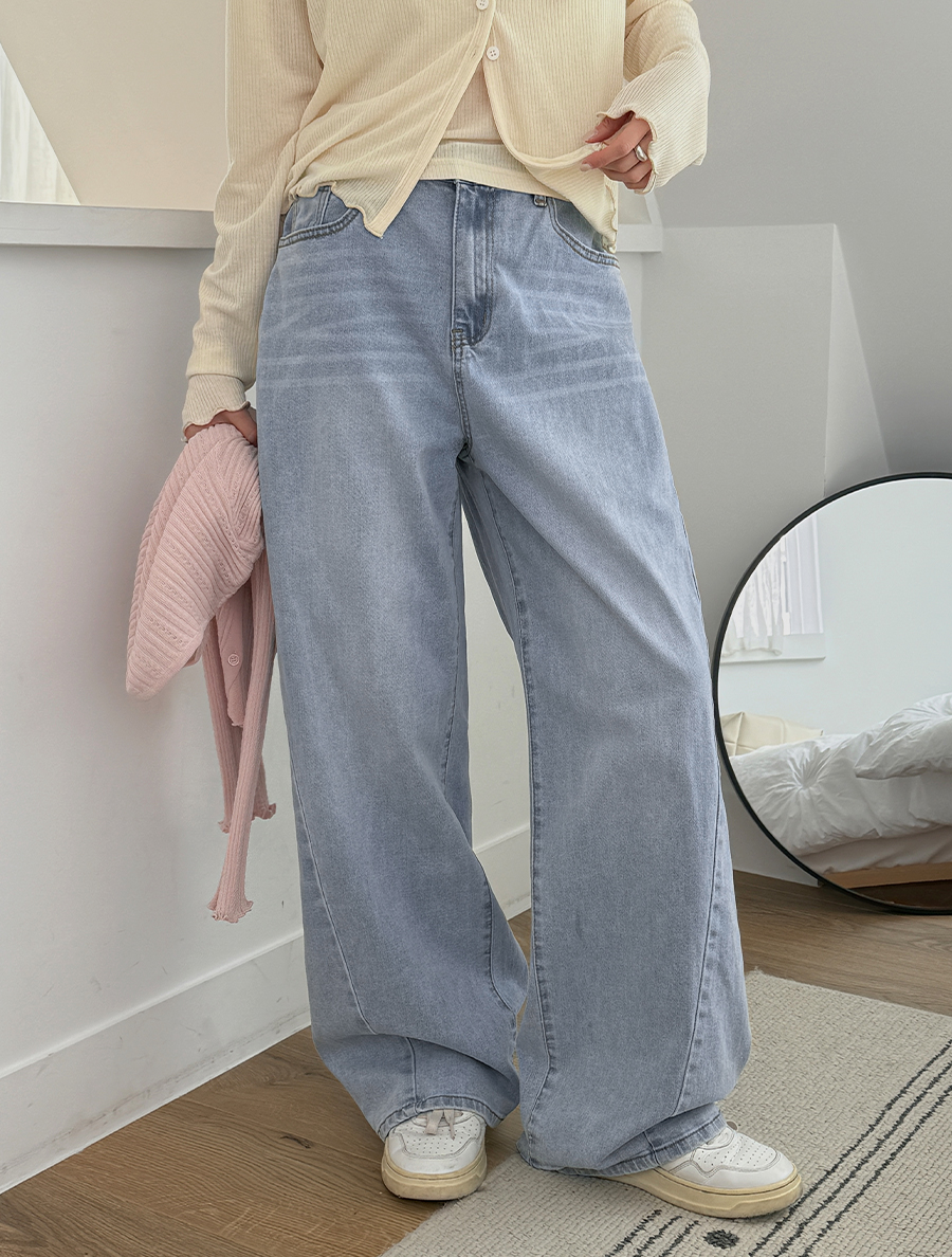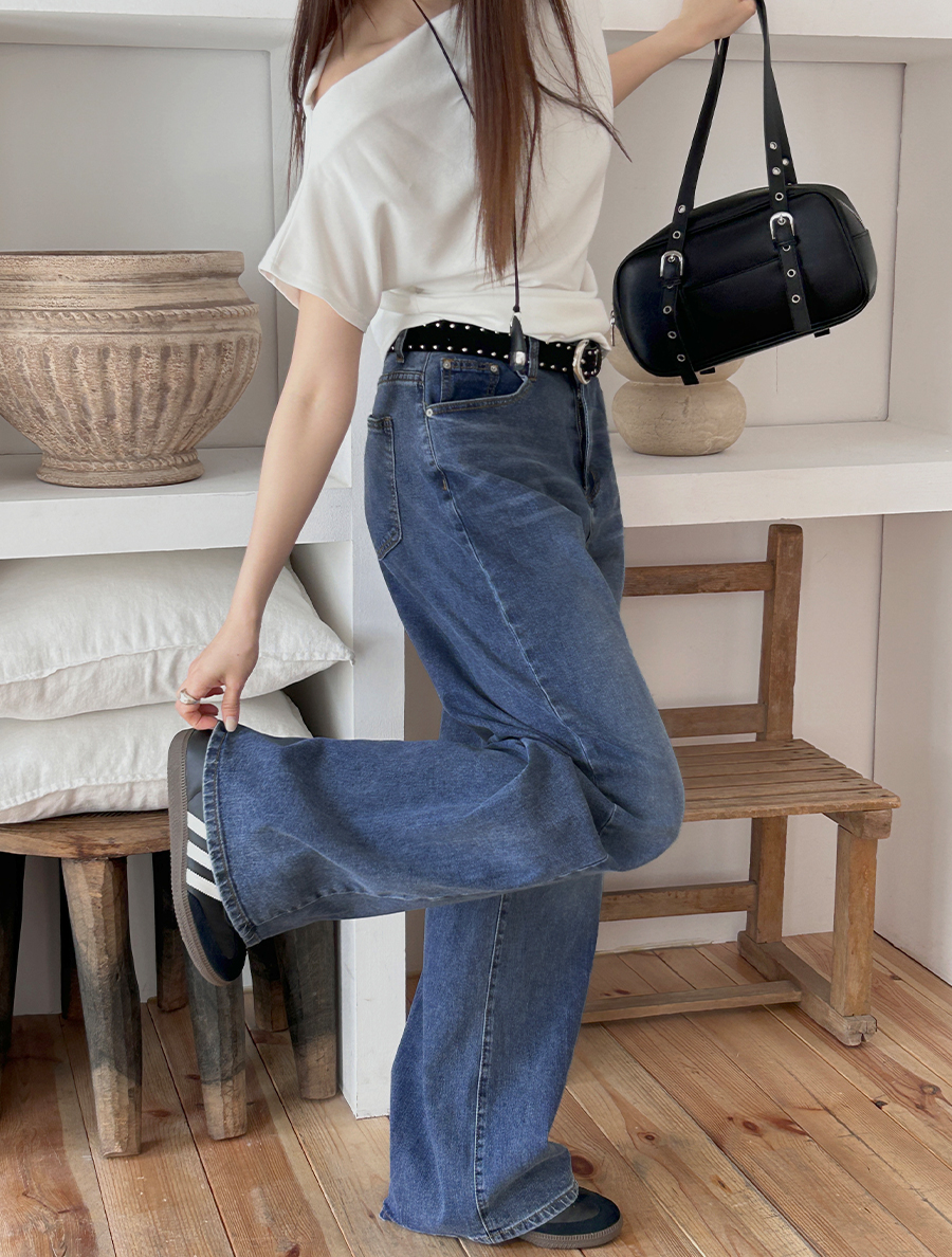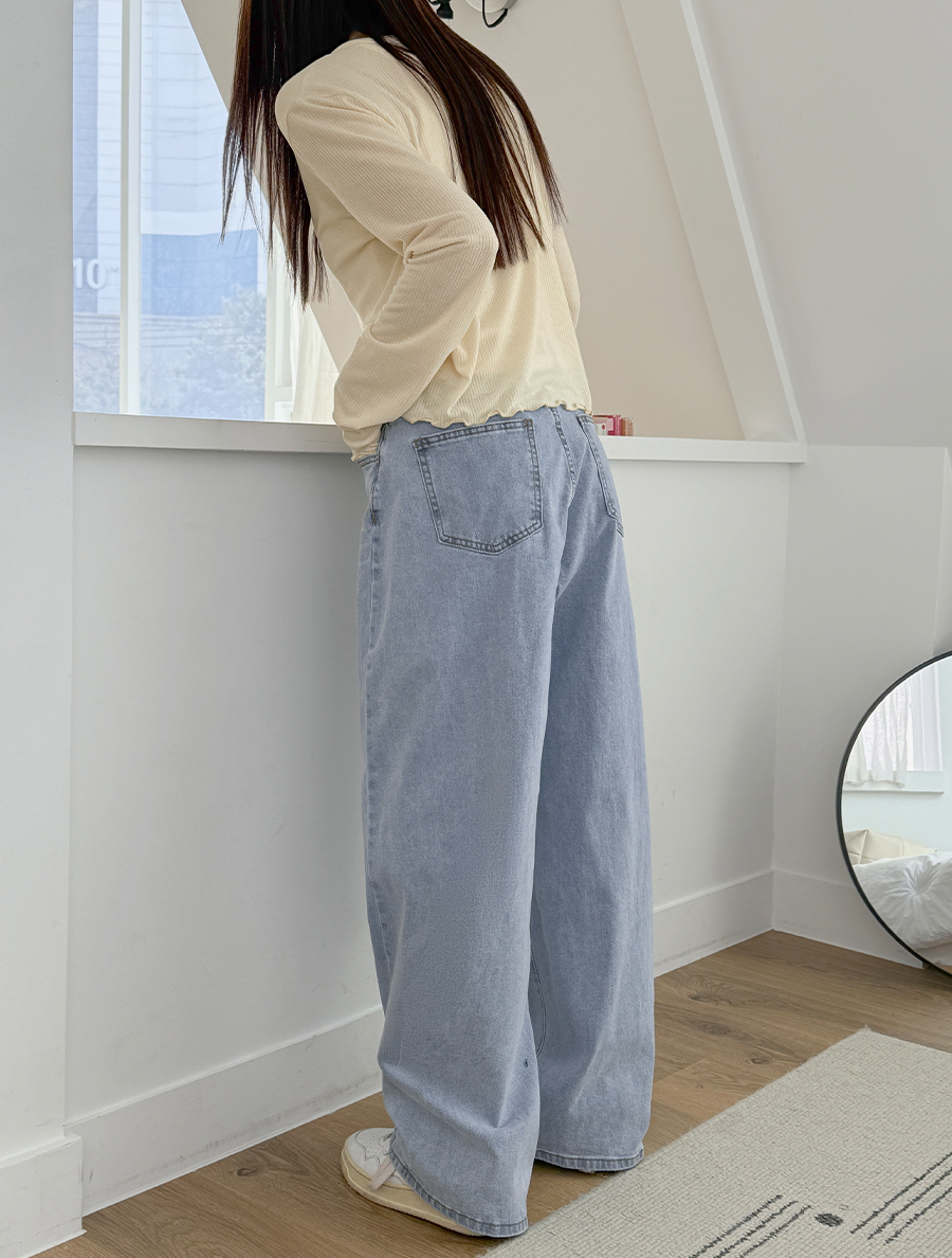 ラポユ 長さ別切開 ウォッシング ワイドデニム