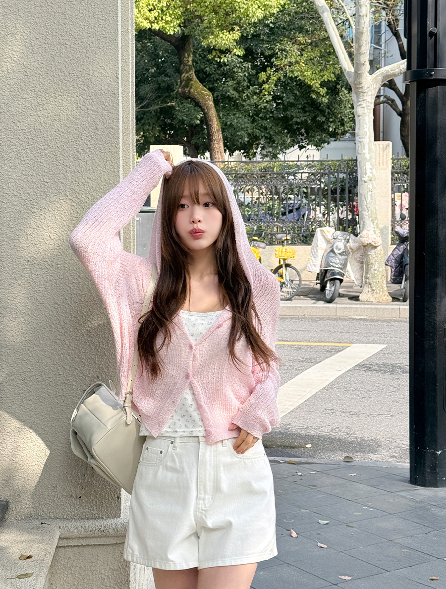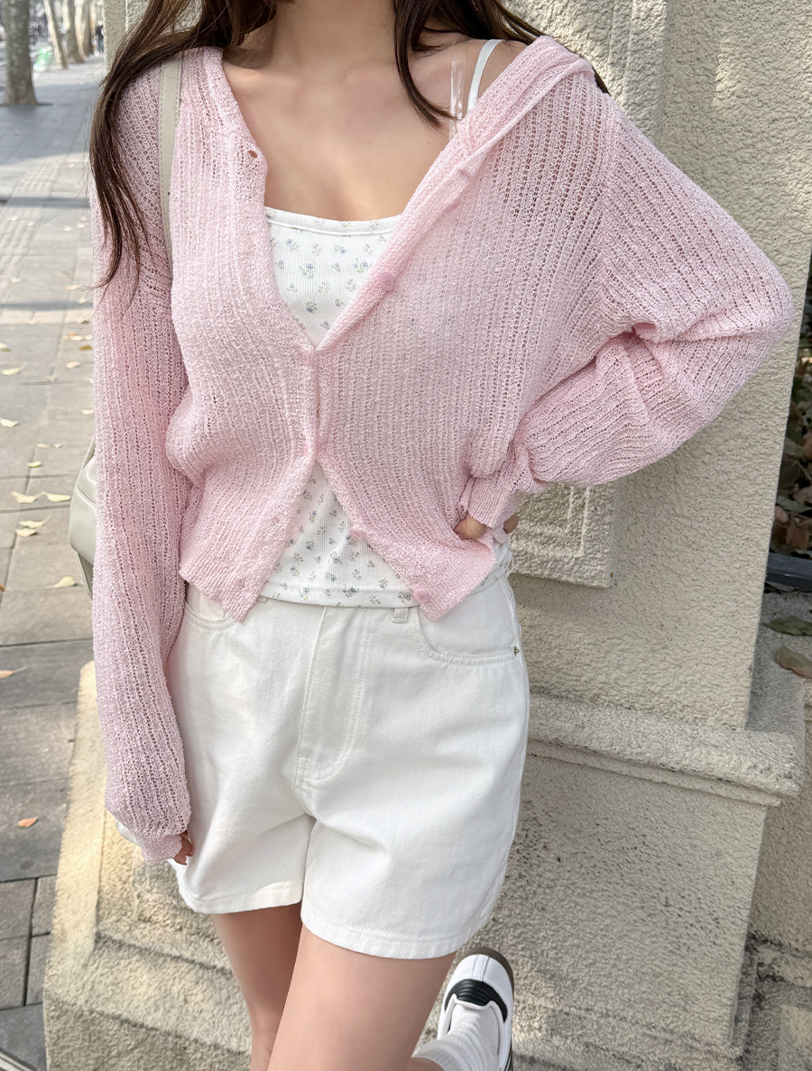 [EVELLET]リーフハシーツルーブックルフードニットカーディガン
