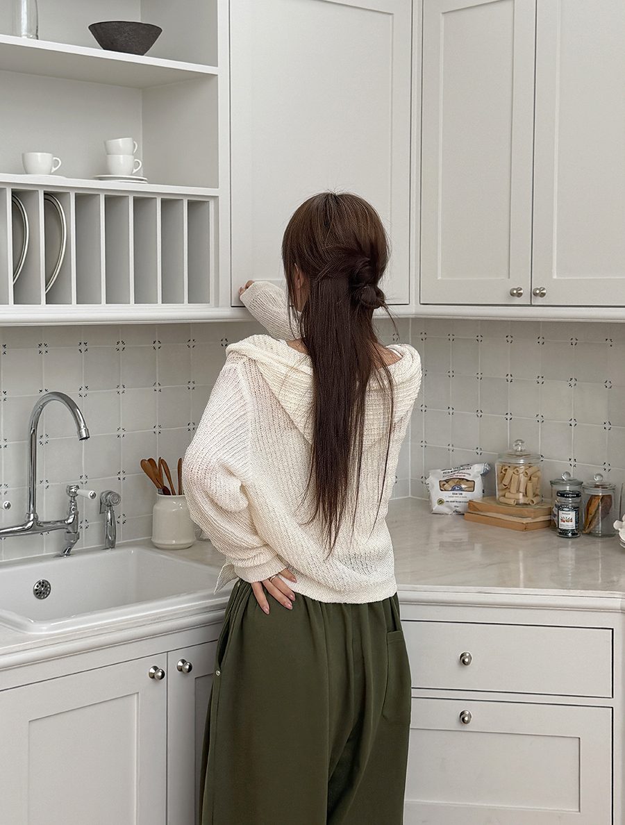 [EVELLET]リーフハシーツルーブックルフードニットカーディガン
