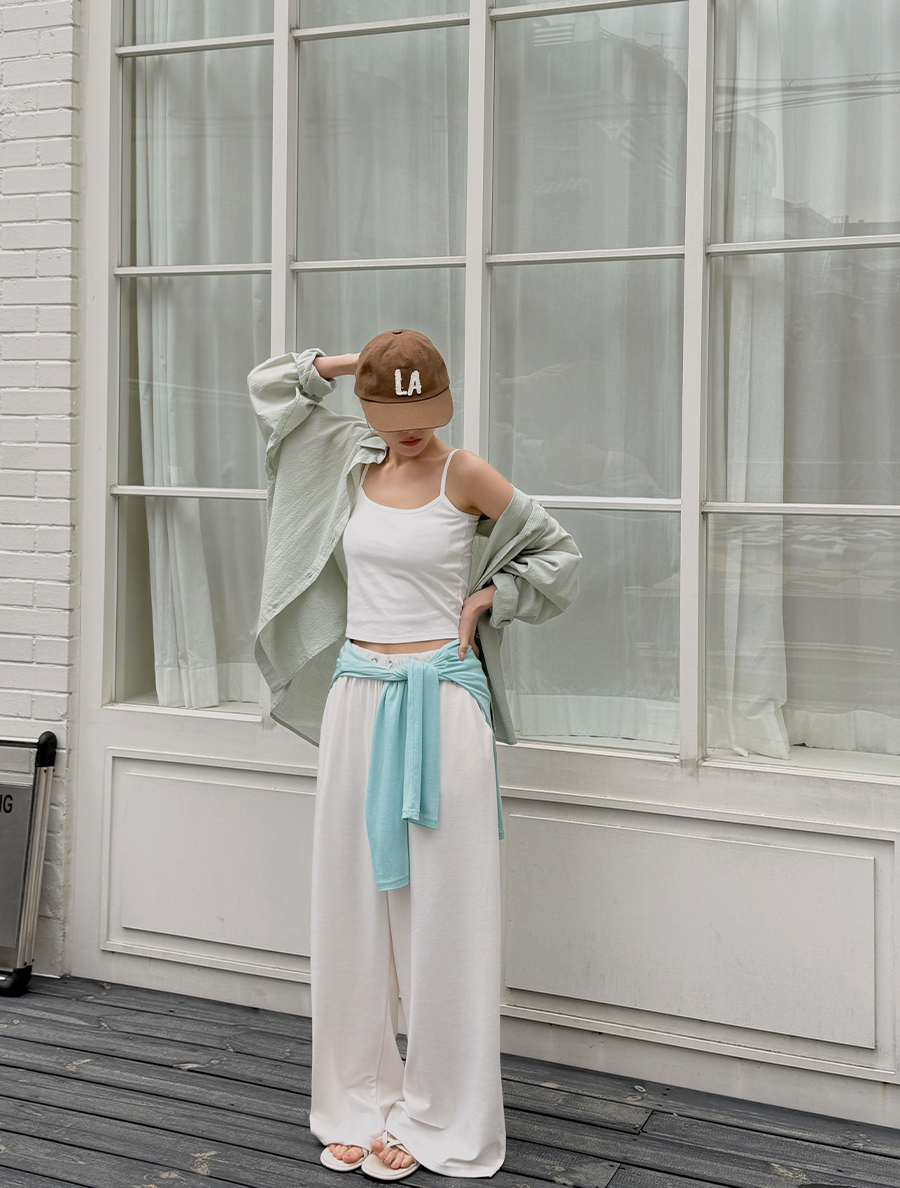 [EVELLET]ロネンブサマーエアリーラベルワイドパンツ