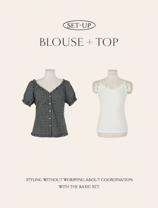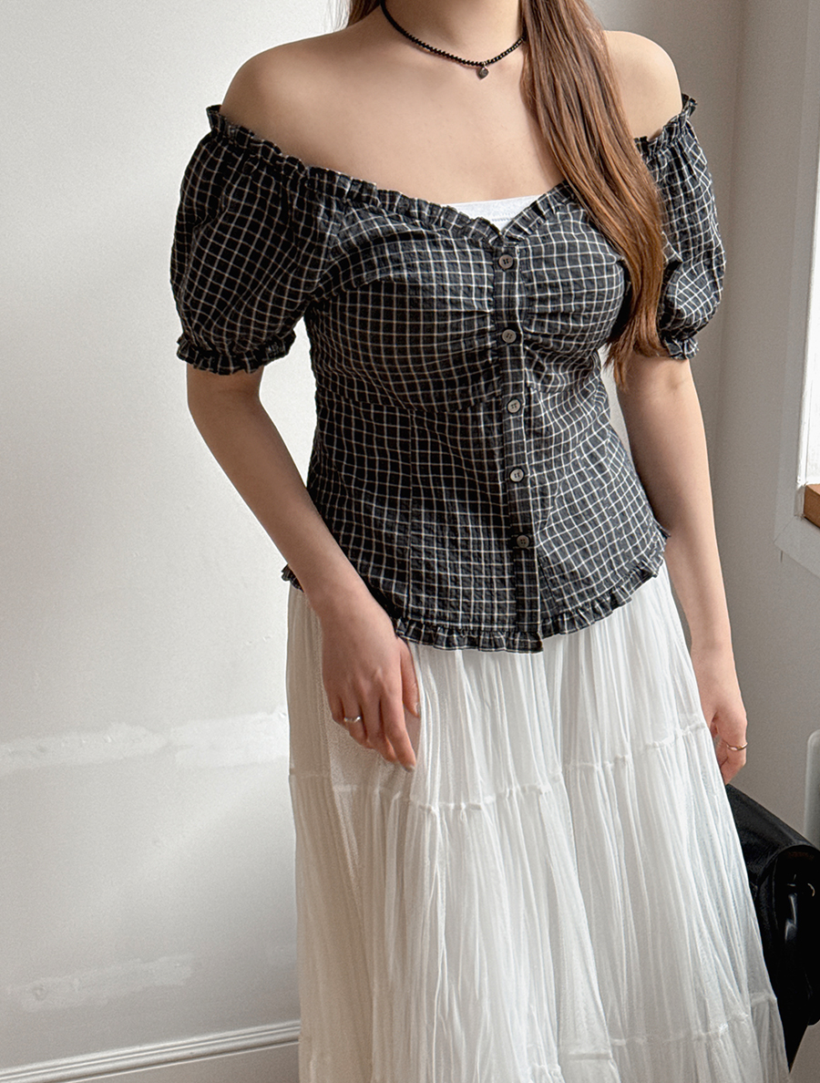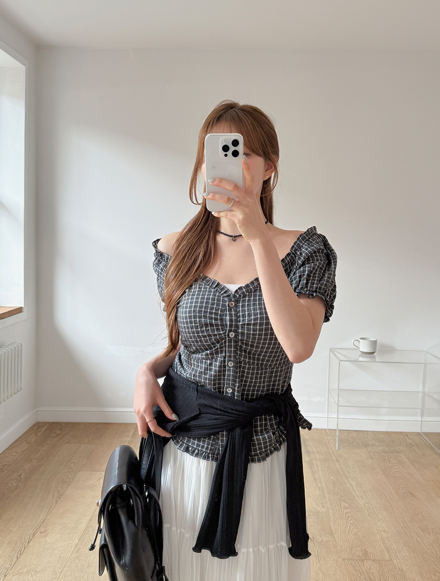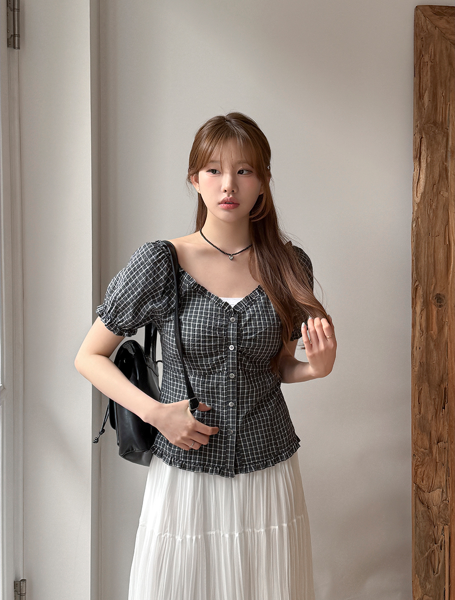 [EVELLET]アビテチェックパフブラウス