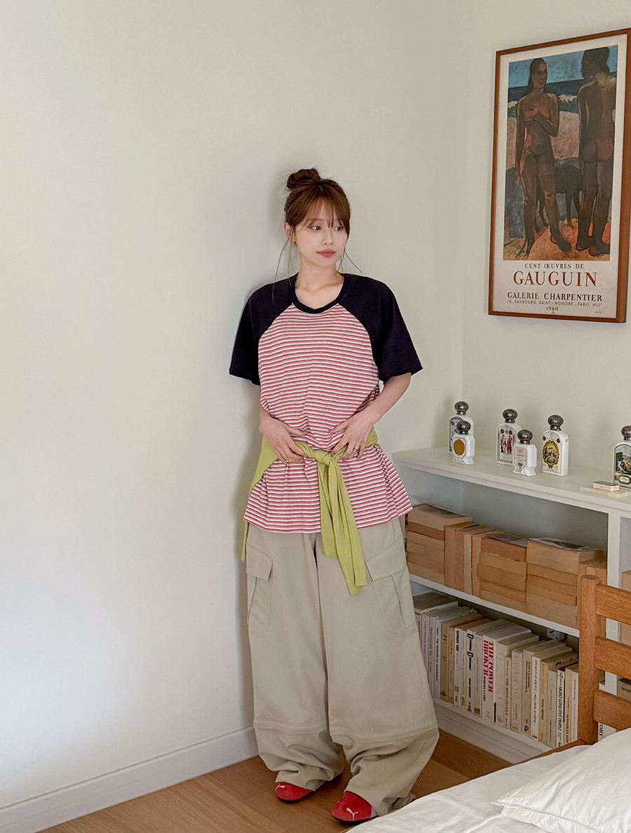 チェンティム配色スタイルレグランティーシャツ