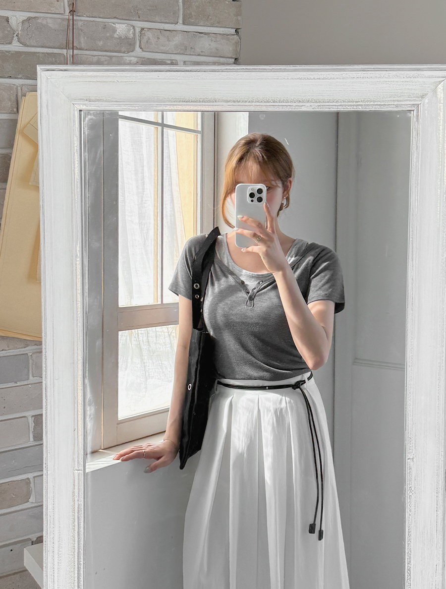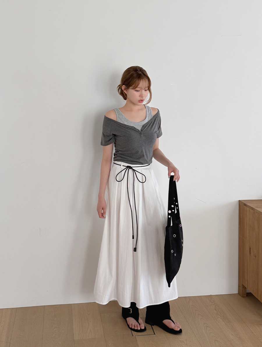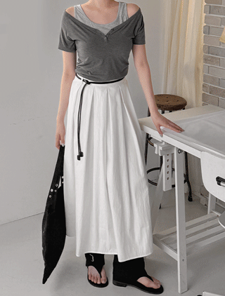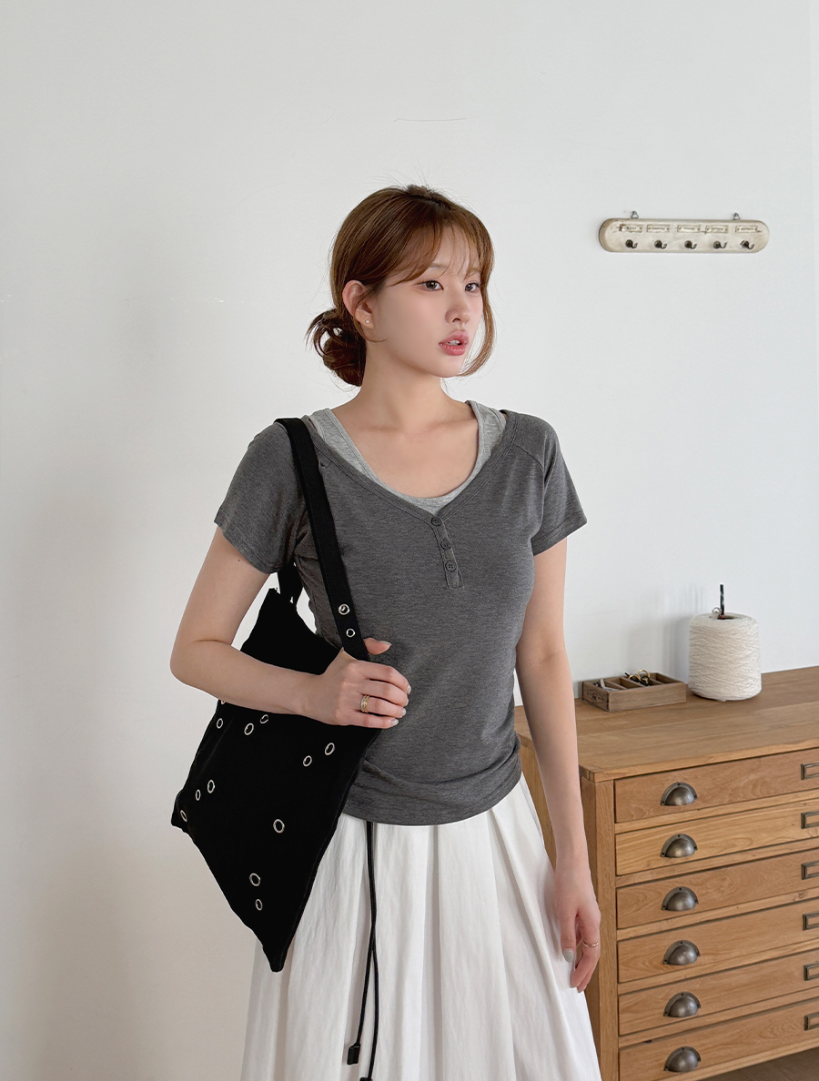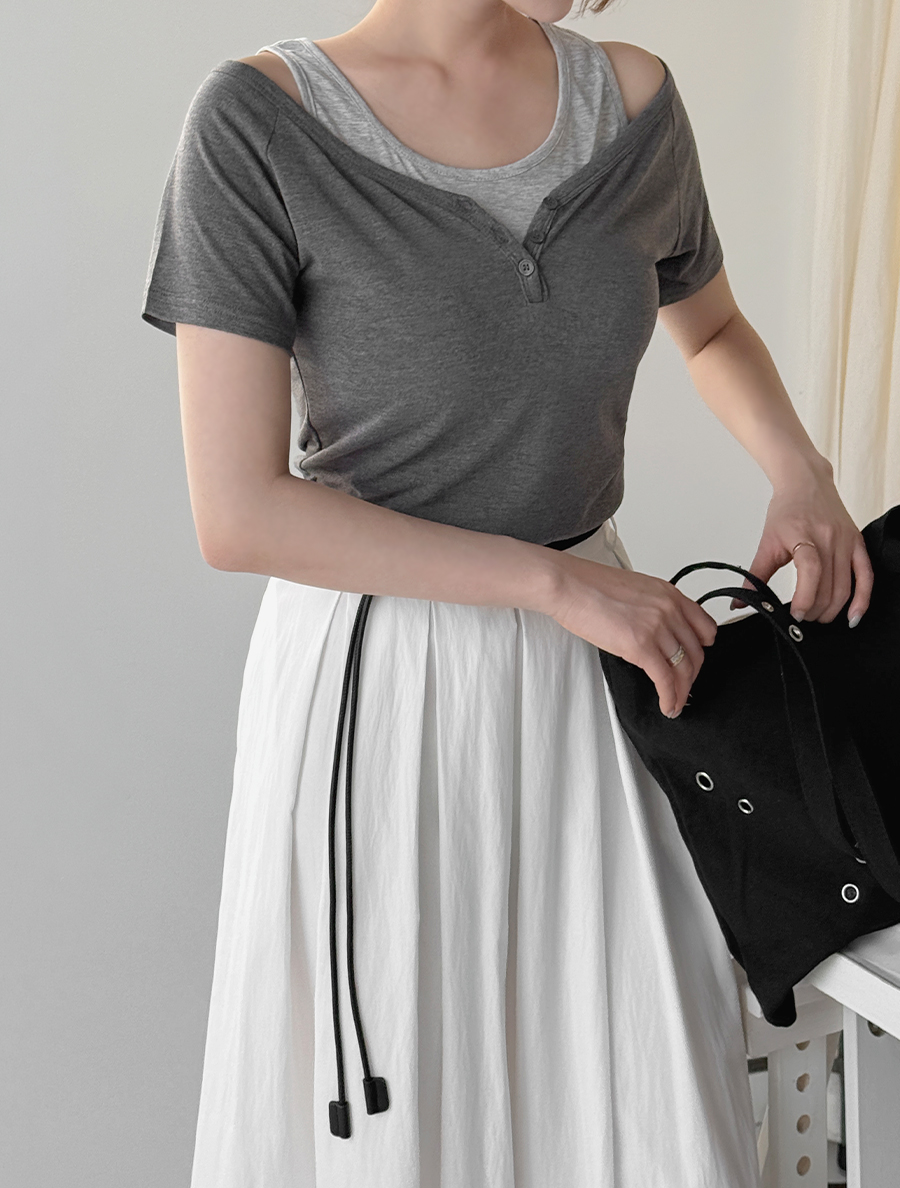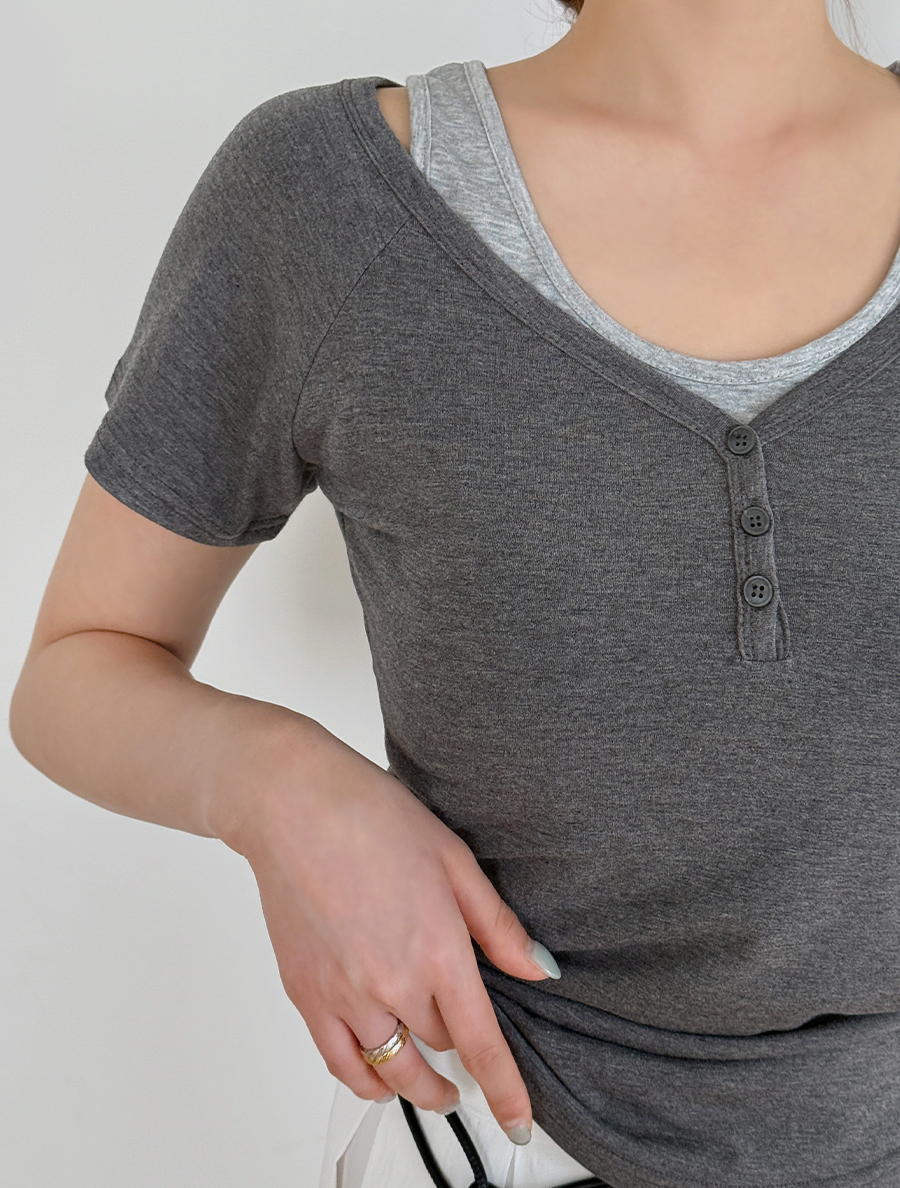 ノンエフンレイヤード配色スリブリスシャーリングボタンティーシャツ