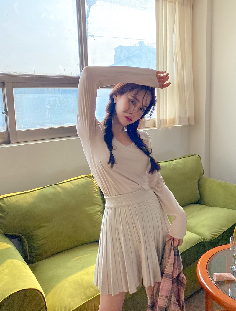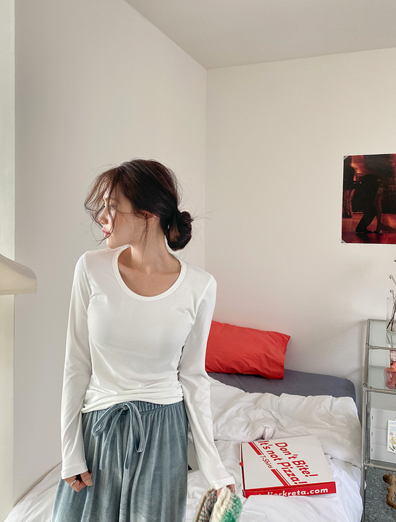 [EVELLET]フェリードソフトワームUネックティーシャツ
