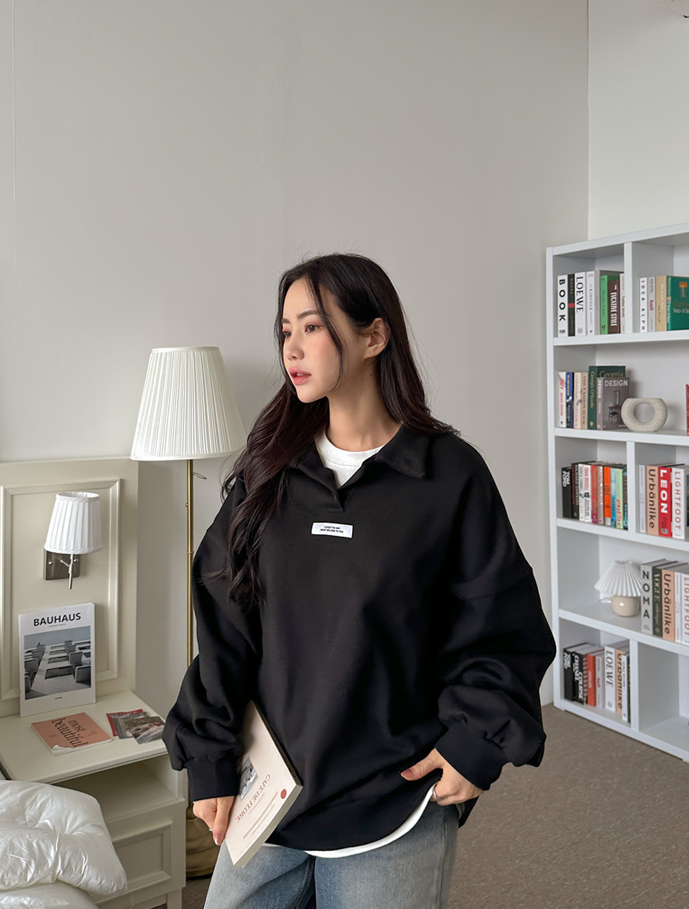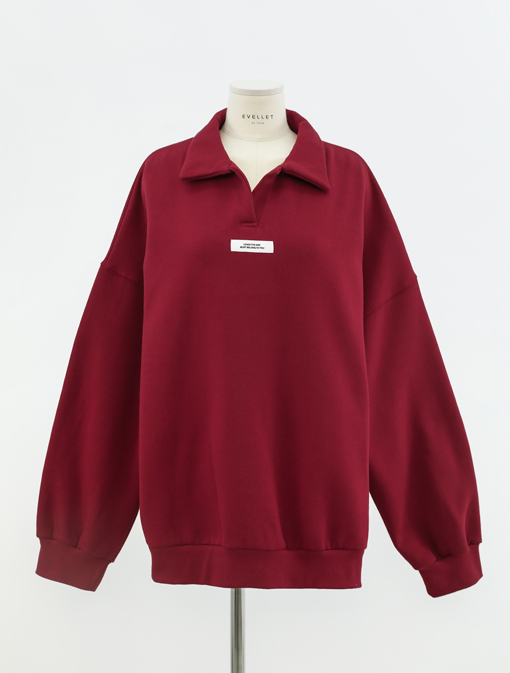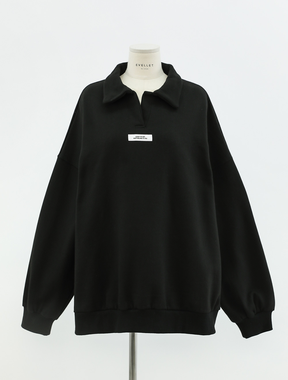 [EVELLET]八子起毛オープンカラーラベルカットソー