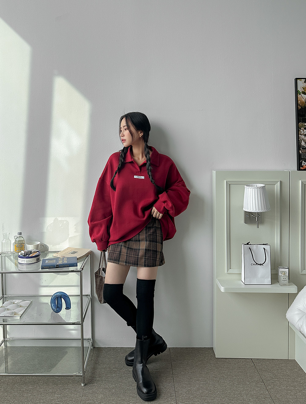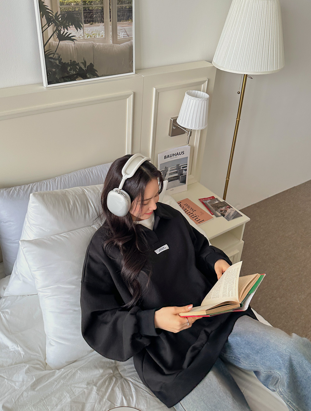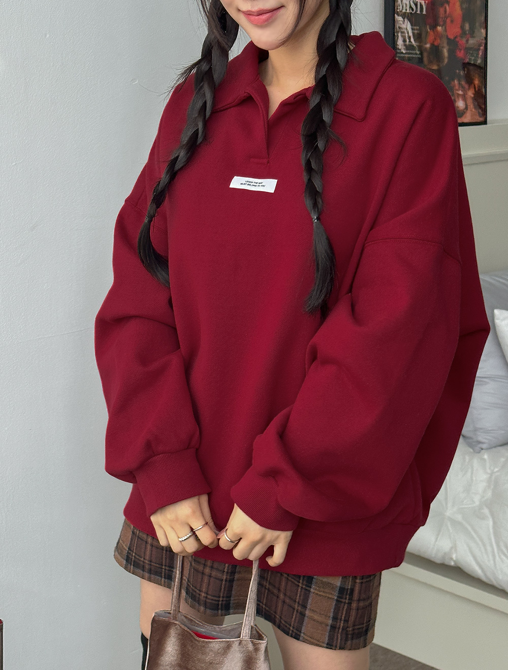 [EVELLET]八子起毛オープンカラーラベルカットソー
