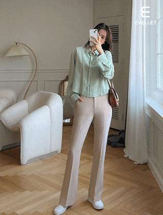 [EVELLET]フロントナイロンクロップドシャツ